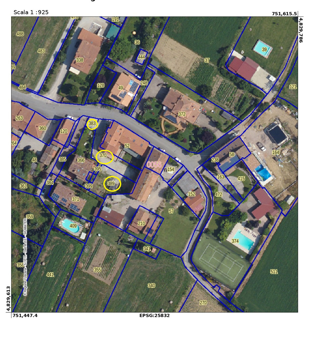 Aree urbane di mq 14, mq 39, mq 313, quota 1/4 mq 350.