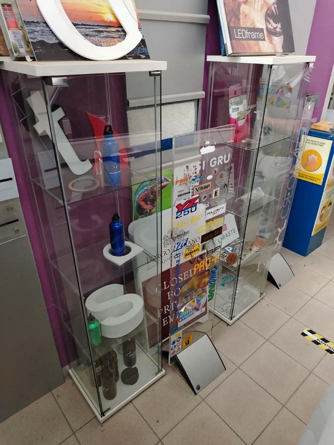 Lotto 41, 42. 44, 45) Bottonatrice button maker, campionario, Server con mobiletto, Espositore zanzariera.