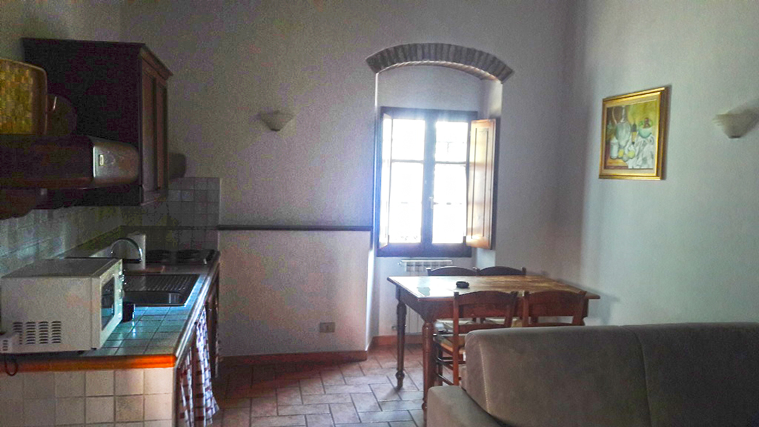 Alloggio su due livelli composto al piano primo da ampio soggiorno-cucina, camera, bagno al piano secondo una grande camera con soppalco nel sottotetto.