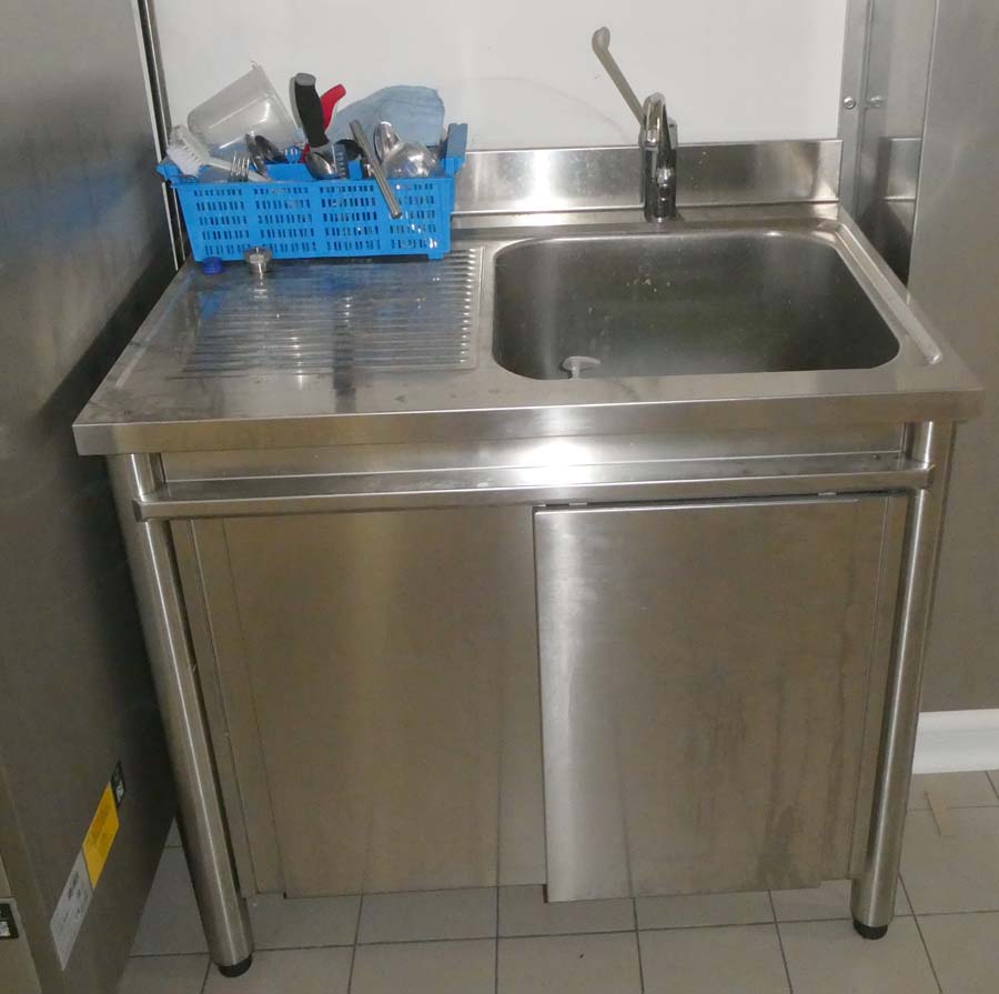 Lotto 17, 18) Lavello ad una buca con sgocciolatoio e parte inferiore con ante scorrevoli, Lavastoviglie a cappotto KRUPPS UNIKO modello EL985E anno 2021.