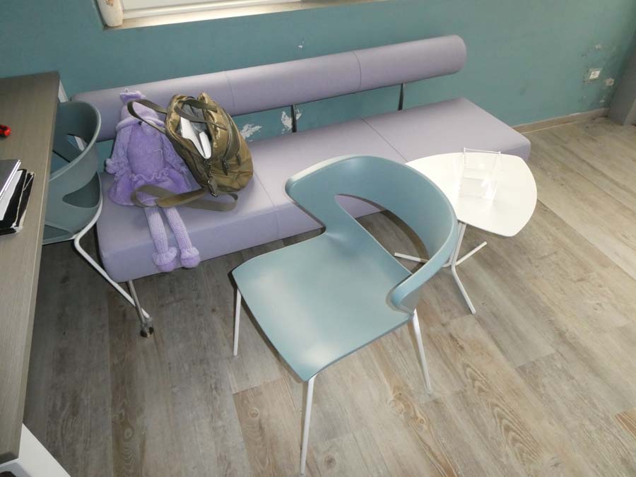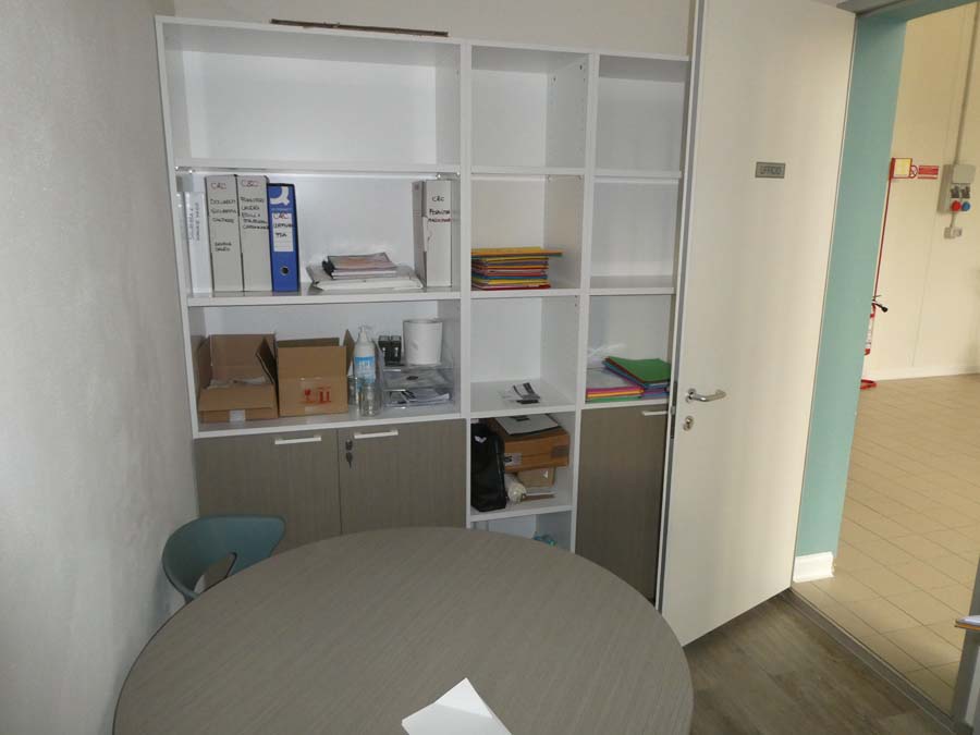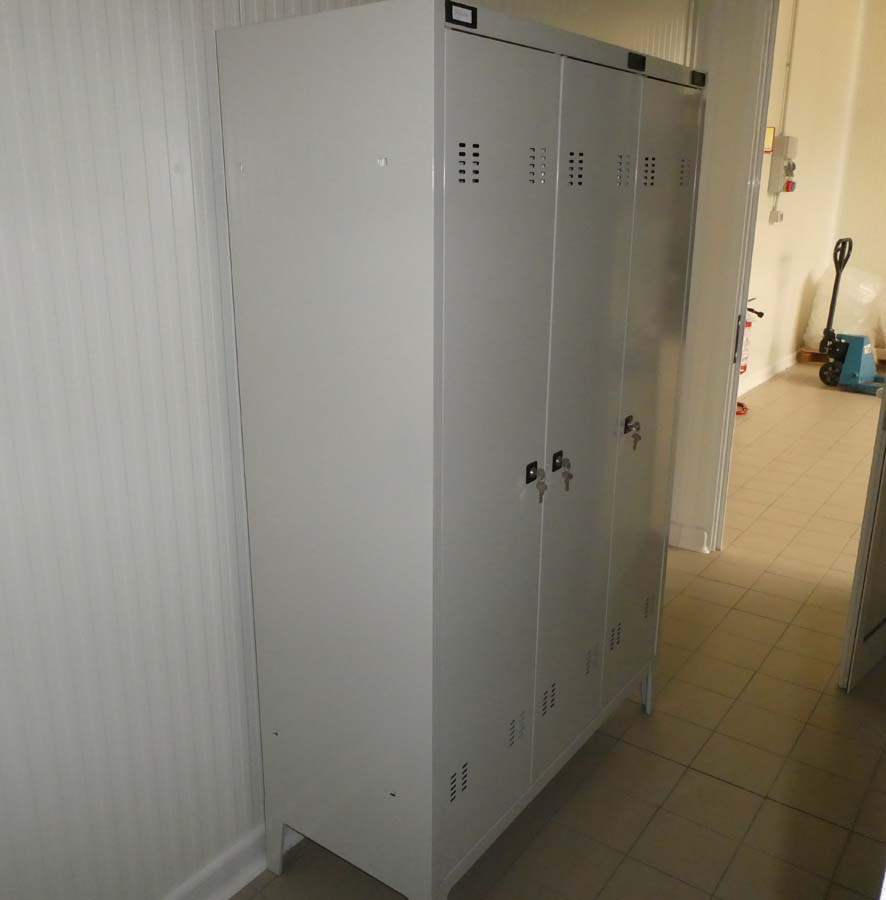 Lotto 34, 43, 44, 45) Due sterilizzatori uno per scarpe Sterijet e uno per mani Steriplus, Stanza server, Ufficio composto da scrivania angolare, due armadiature ante a giorno e vetro, tavolo circolare, n. 4 sedie, divani e piccola stufa elettrica, armadietto per spogliatoio e panca.