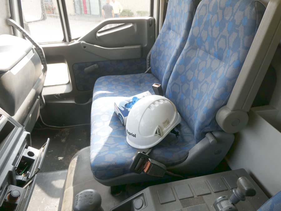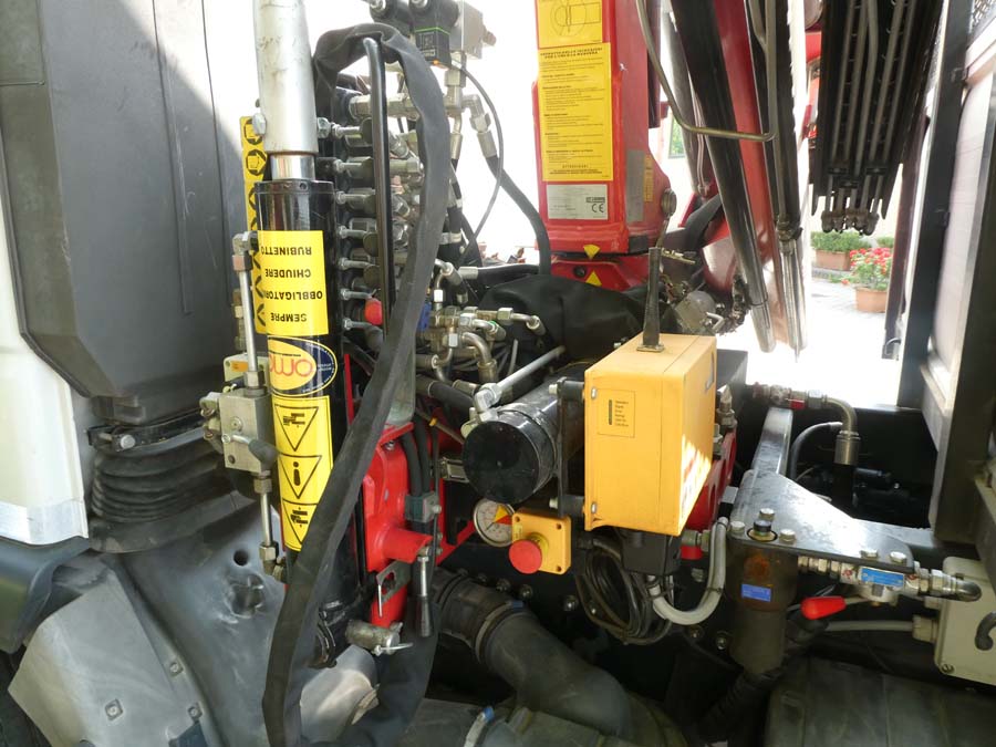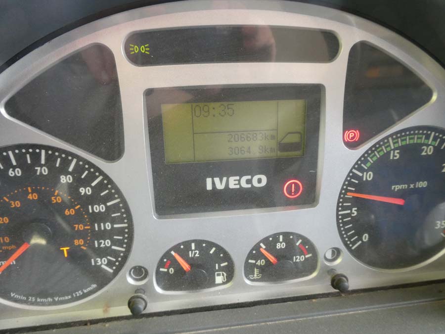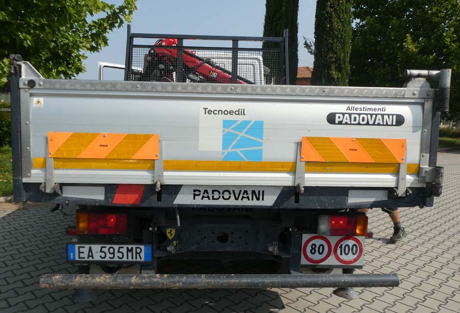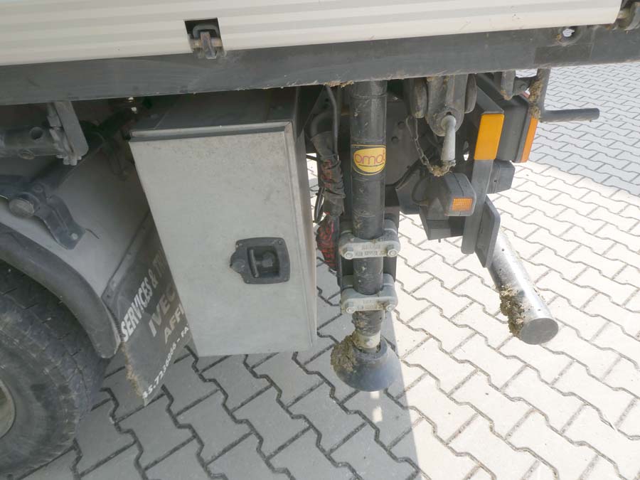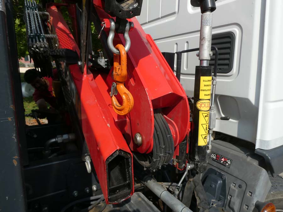 Autocarro Iveco EuroCargo 80E17 Tg. EA595MR, provvisto di gru (anno 2024) e cassone ribaltabile, data di immatricolazione 30/08/2006, Kw. 125, cc 3920, alimentazione a gasolio, chilometraggio da tachimetro 207.000 circa.