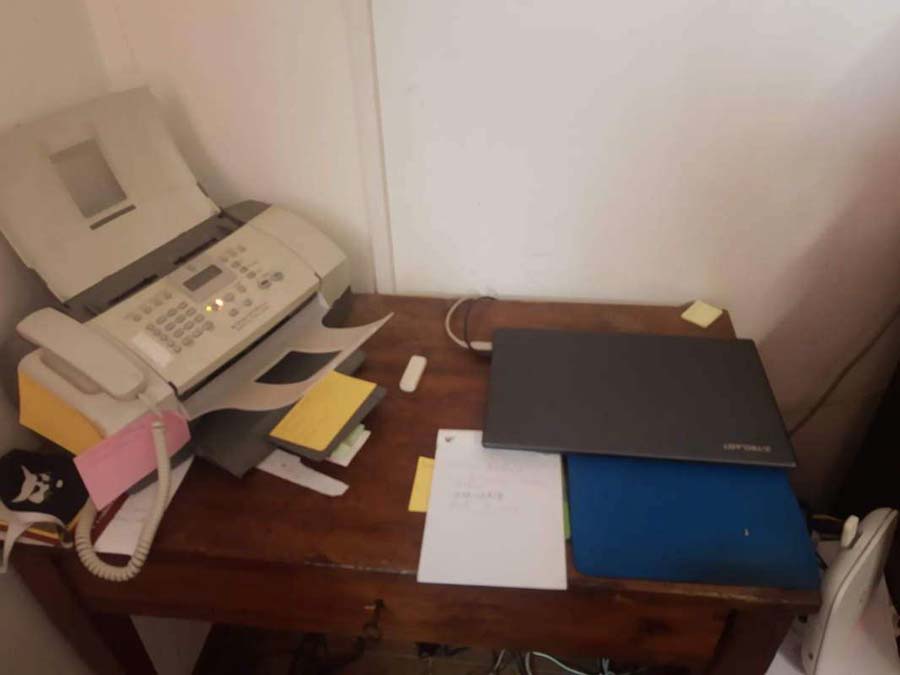 Lotto 1, 2, 3, 4, 5, 7, 8, 9, 11, 12, 13, 14, 15, 16, 17, 18, 19, 20, 21, 22) ARREDO DA UFFICIO composto da: Mobile legno massello tipo “arte povera” dotato di 4 sportelli bassi e porta cartelle superiore, Mobile legno massello tipo “arte povera” dotato di 4 sportelli bassi e porta cartelle superiore, fotocopiatrice KIOCERA mod. FS 1118 MFP, tavolo dattilo in legno massello con cassetto, telefono e fax, PC, scrivania in legno massello due sportelli e cassetto, poltroncina girevole in similpelle nera, divano in pelle bianco a due sedute, divano in tessuto chiaro due sedute, n. 7 poltroncine in pelle e intelaiatura in legno, tavolinetto in legno, ...