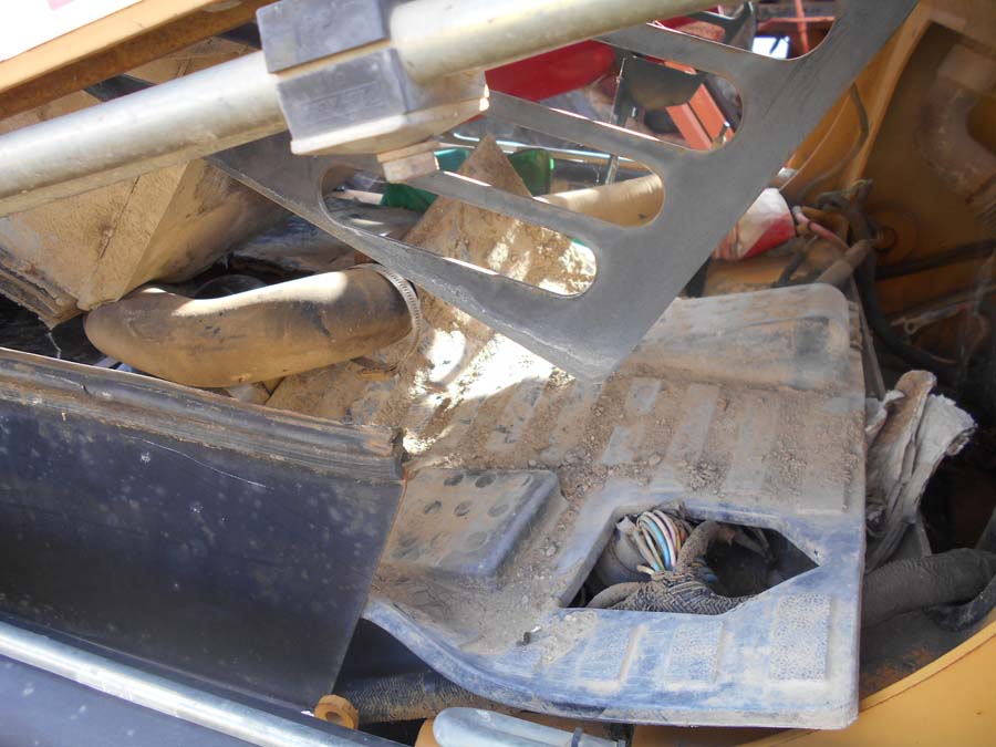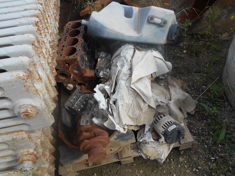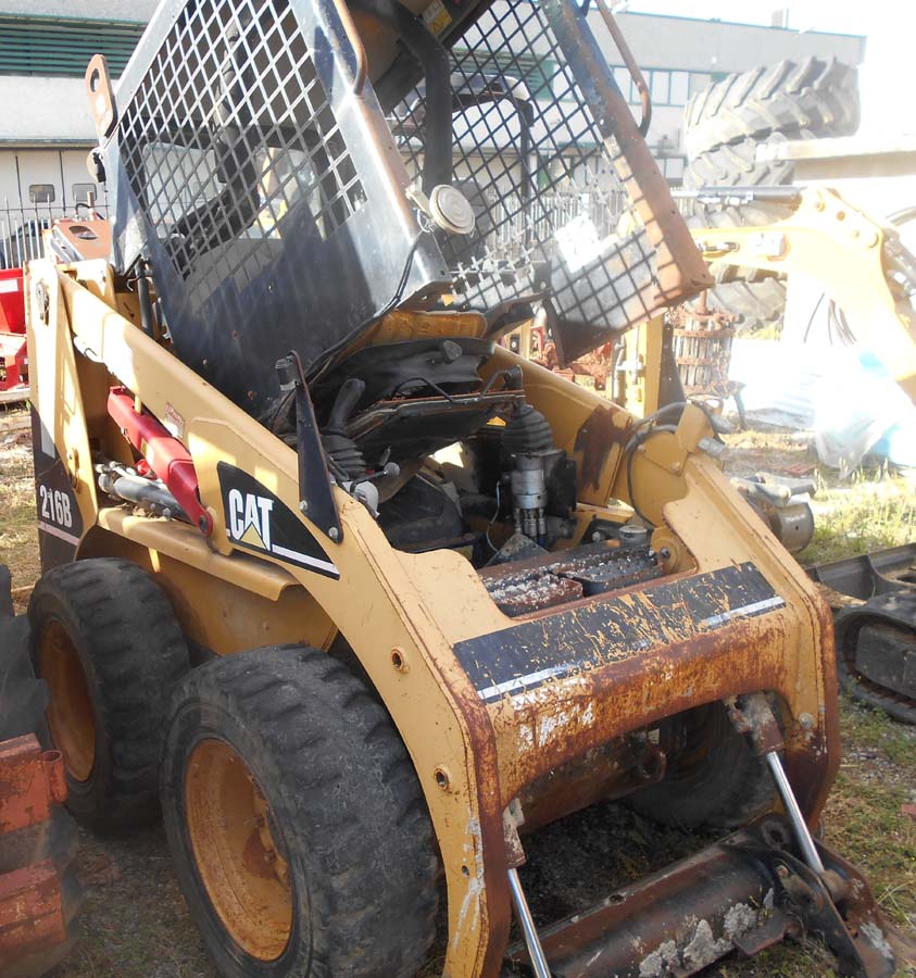 Lotto 27) Minipala CATERPILLAR in corso di riparazione, parti smonatate.