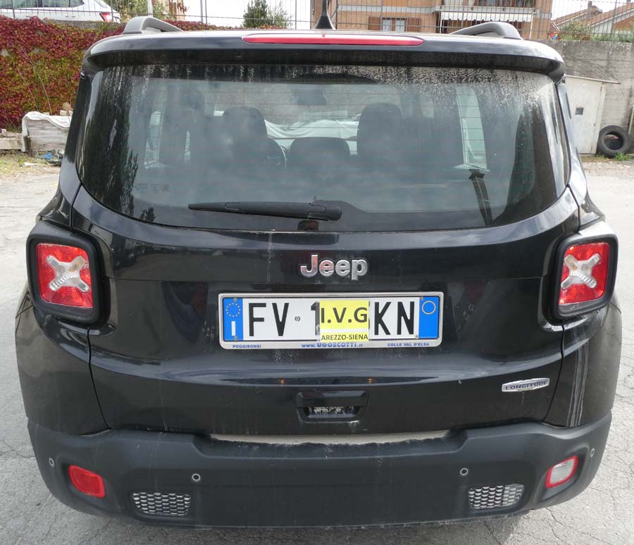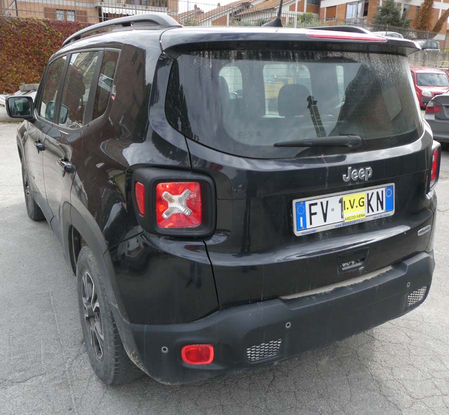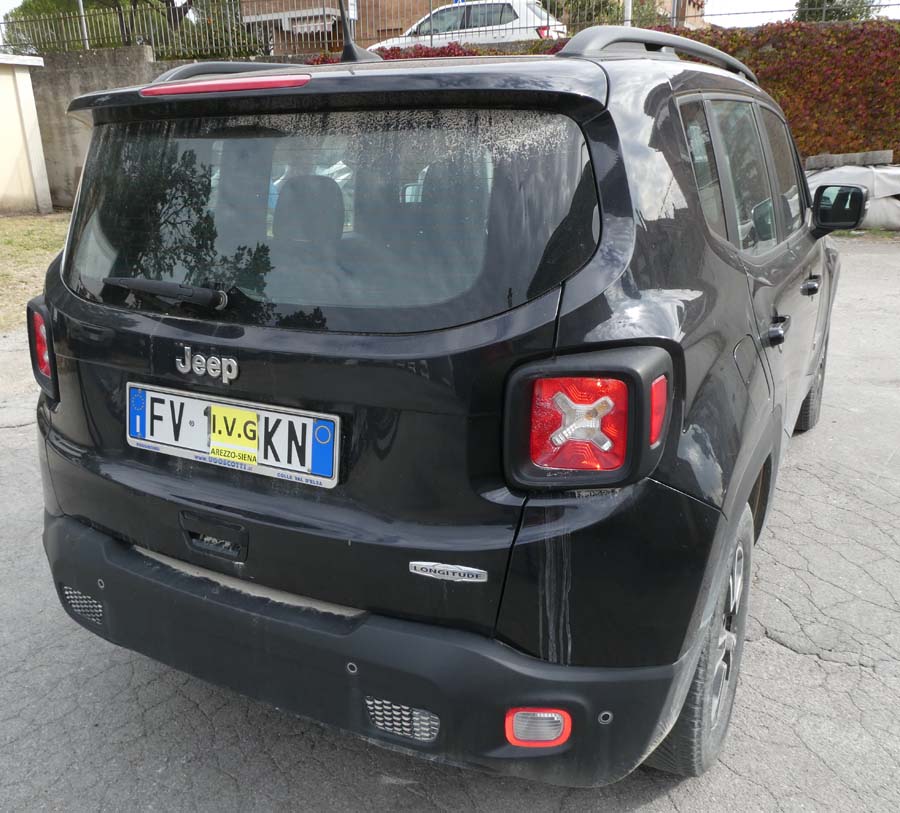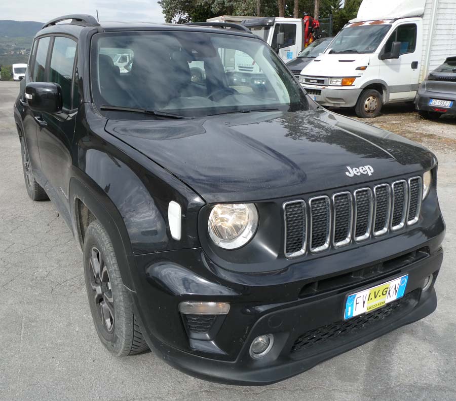 Autovettura JEEP RENEGADE, data immatricolazione 19 aprile 2019, cc. 1598 alimentazione a gasolio, 88,00 Kw, km. da tachimetro 94.965. Il veicolo è provvisto di chiave e di libretto di circolazione.
