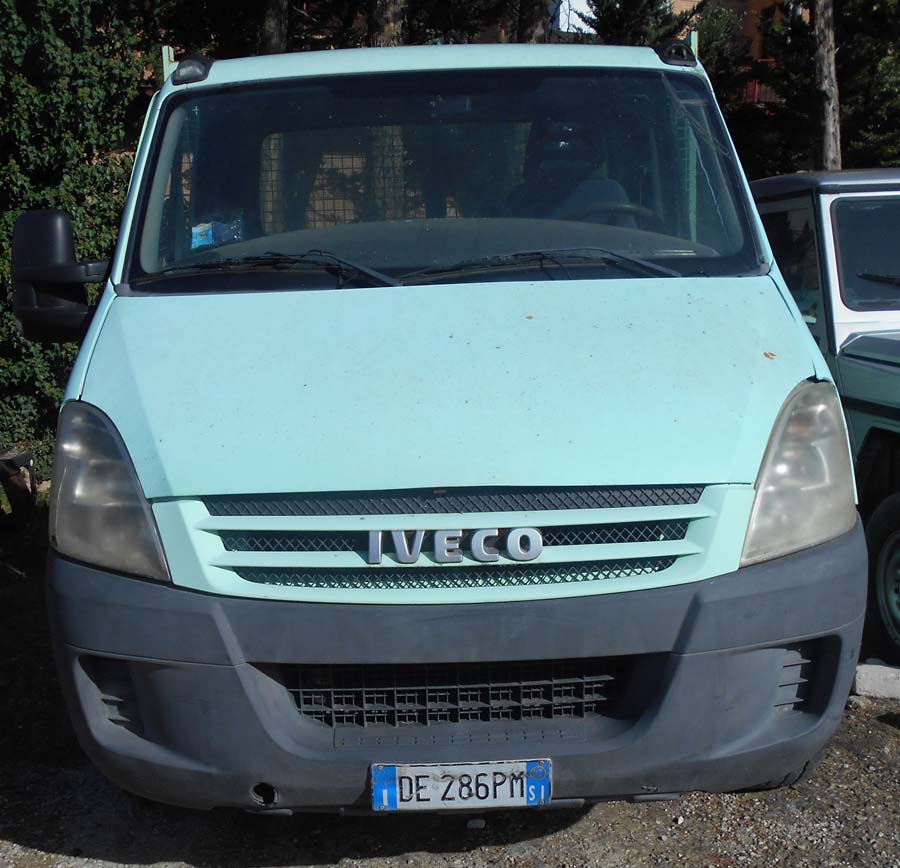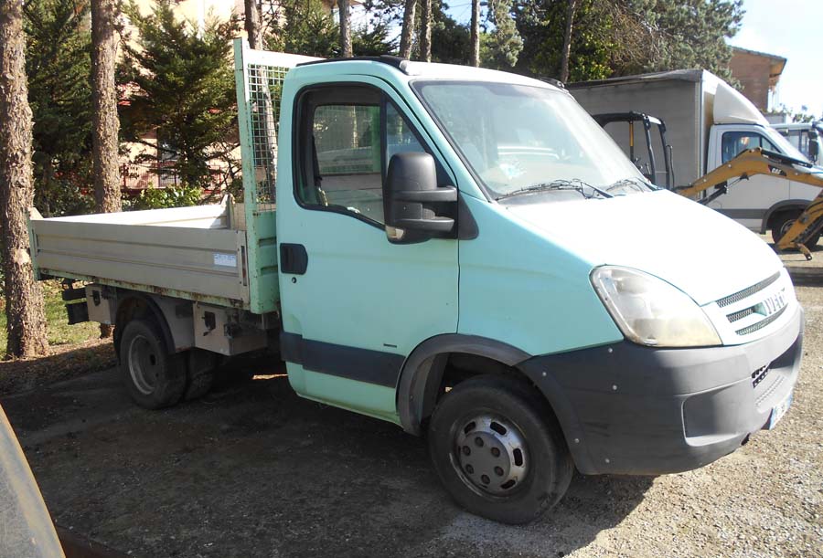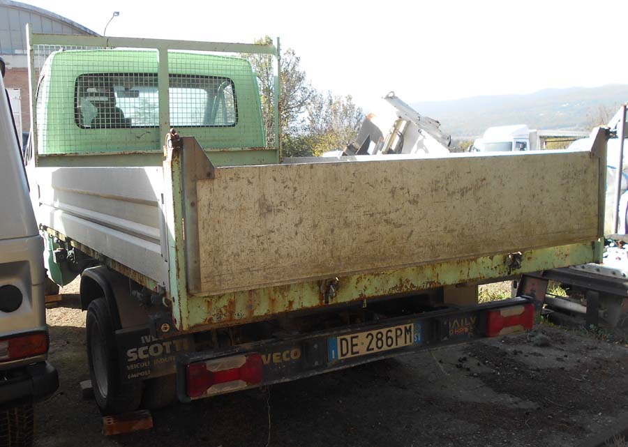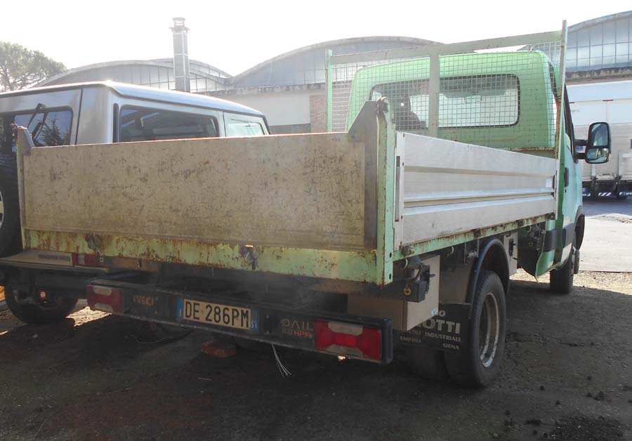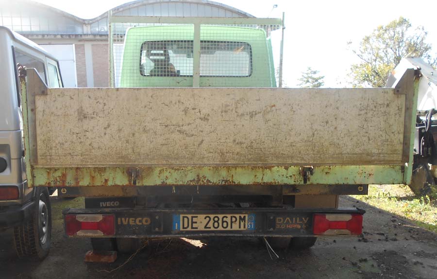 IVECO Daily targato DE 286 PM immatricolato il 5/03/2007 alimentazione a gasolio, cc 2998, cassone ribaltabile portata 950 Kg, n. 3 posti, provvisto di libretto di circolazione e chiave rotta. Chilometri da ultima revisione del 2019 189.525.