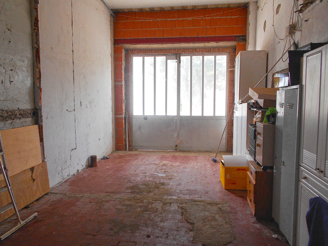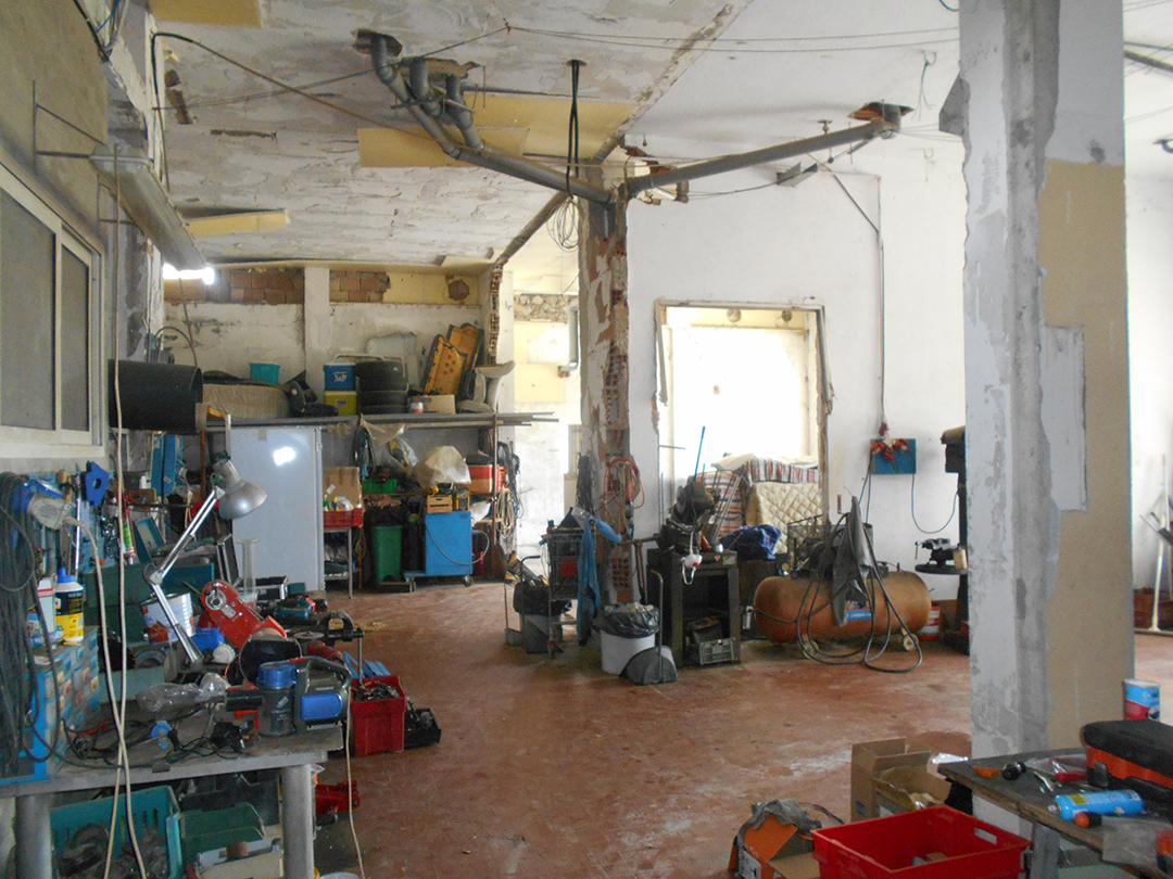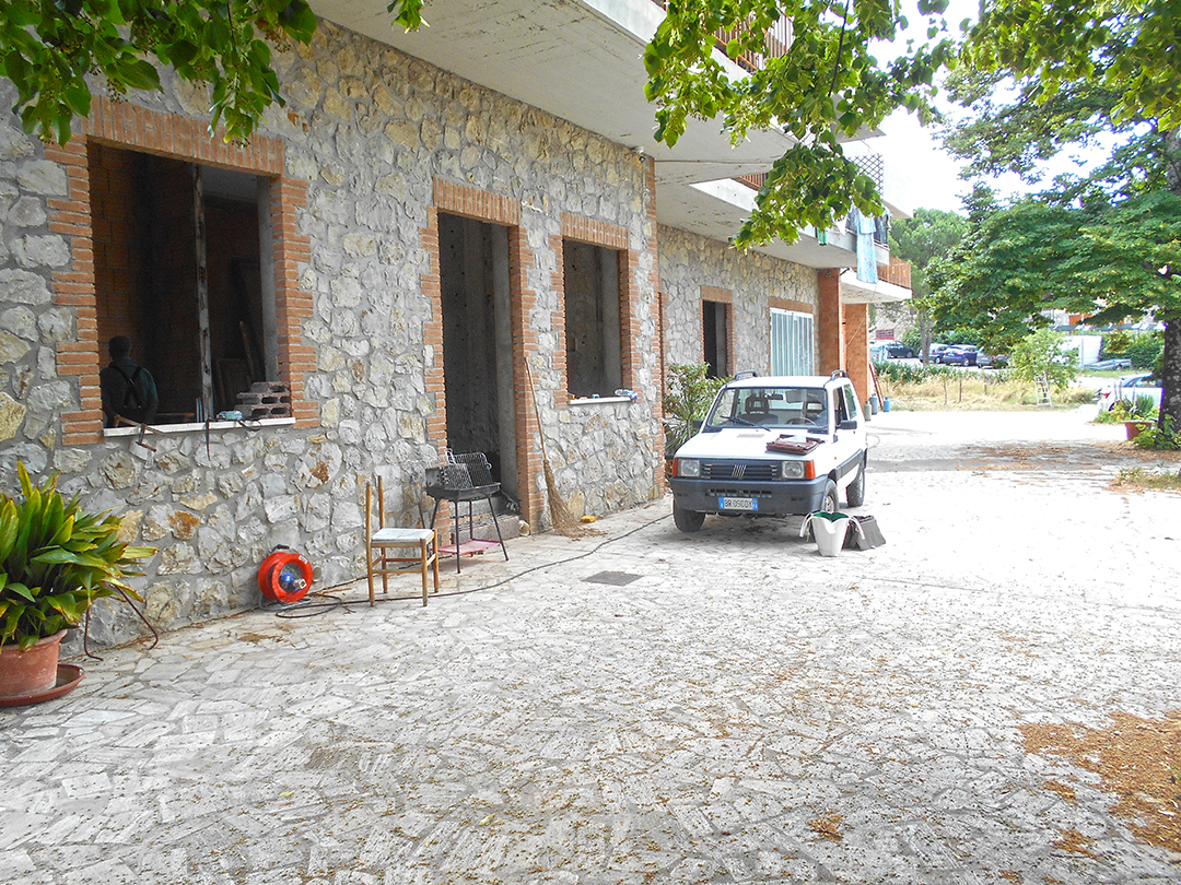 Compendio immobiliare in corso di ristrutturazione, composto da ex laboratorio artigianale, locale di deposito e scoperto di pertinenza al p. S1 dell’edificio, quattro appartamenti finiti al grezzo avanzato e relativi scoperti di pertinenza ai p. T e 1° e da area edificabile della superficie di mq 1.350.