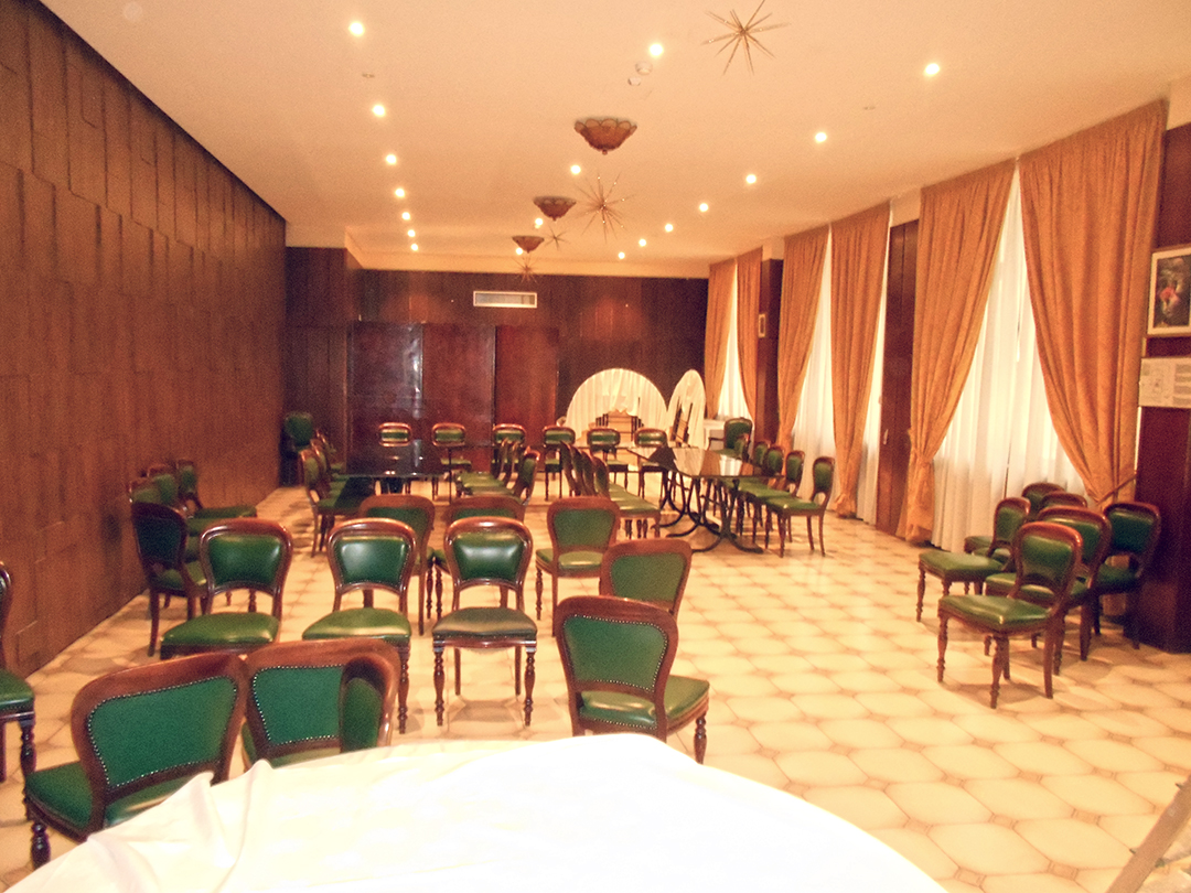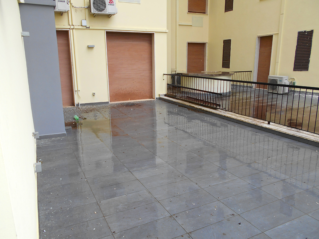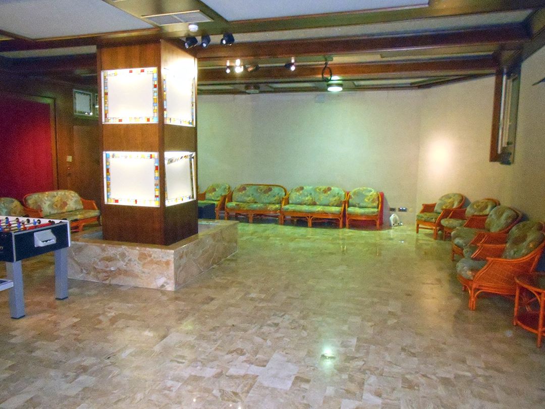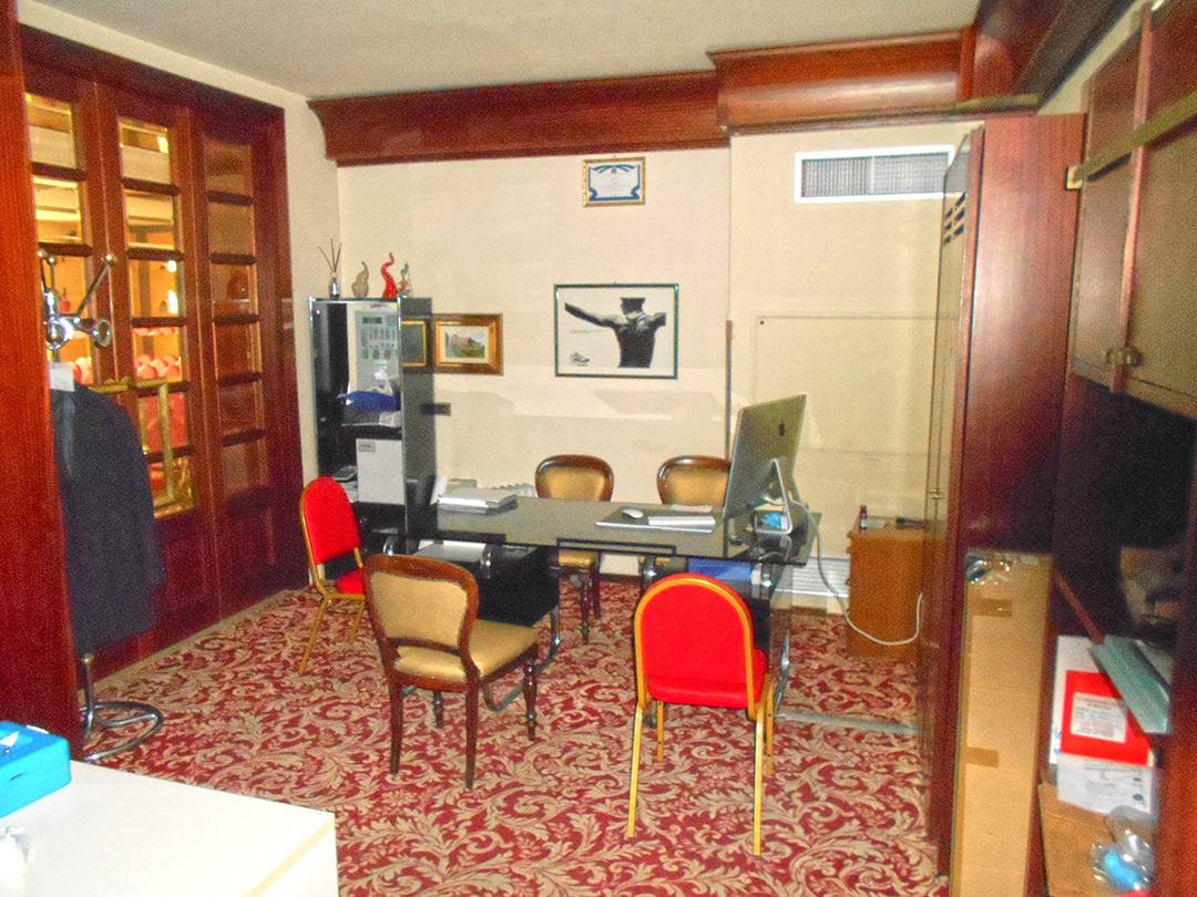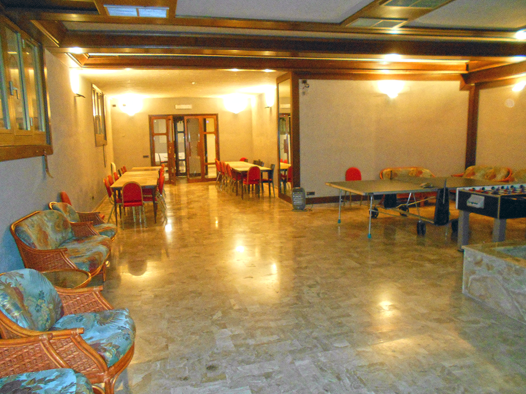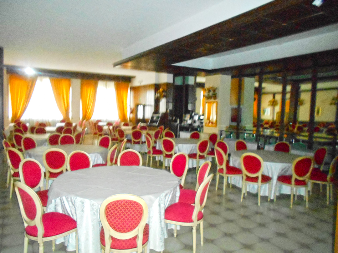 Al piano terra si trova l'ingresso, una grande hall, uffici, sala di accoglienza e conferenze, ampia area per la somministrazione di alimenti e bevande, bagni di servizio accessori, terrazza retrostante.