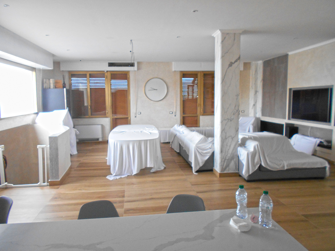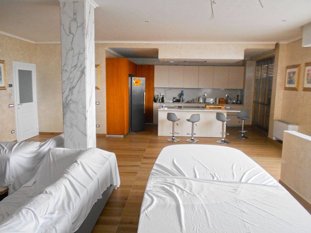 Abitazione composta da un ampio soggiorno con camino, angolo cottura e amplia terrazza ad uso esclusivo, disimpegno, quattro camere da letto dotate di servizi igienici esclusivi, cabina armadio, e antibagno, balconi sul lato sud.