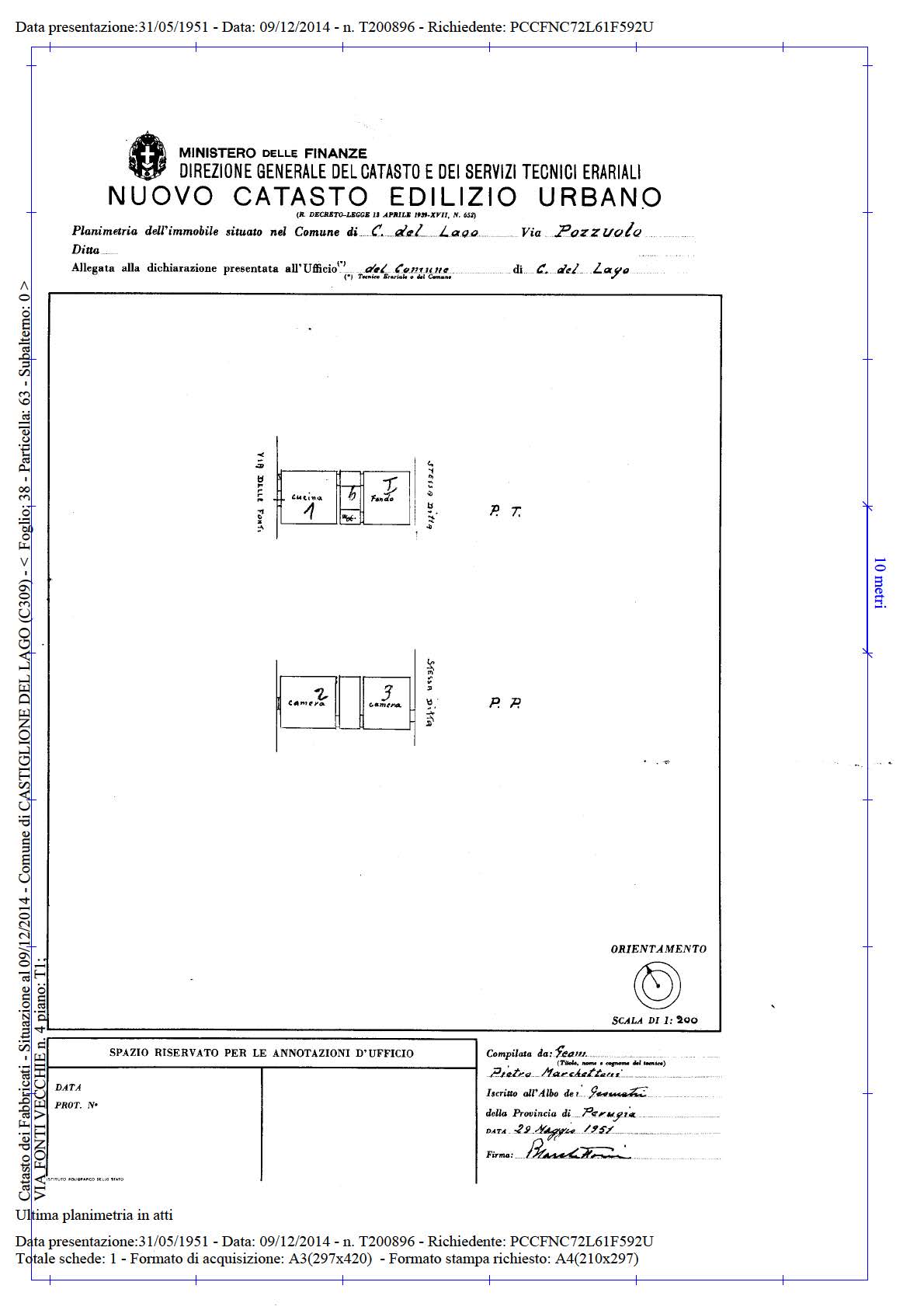 L’unità immobiliare risulta censita al Catasto Fabbricati del Comune di Castiglione del Lago al Foglio 38 particella 63 (Cat. A/4, classe 1, consistenza vani 4).