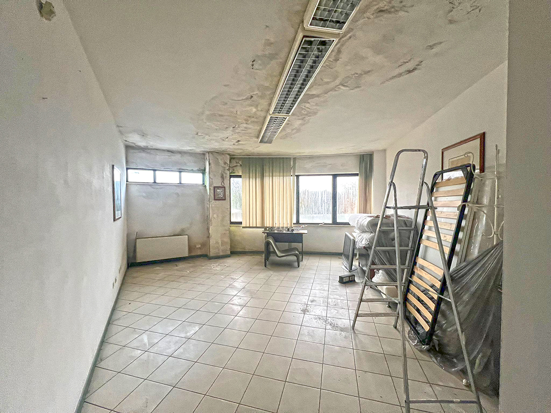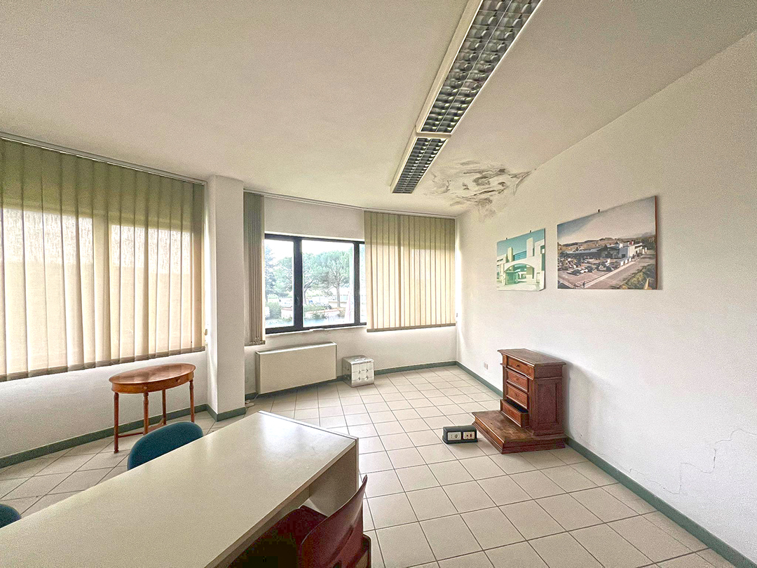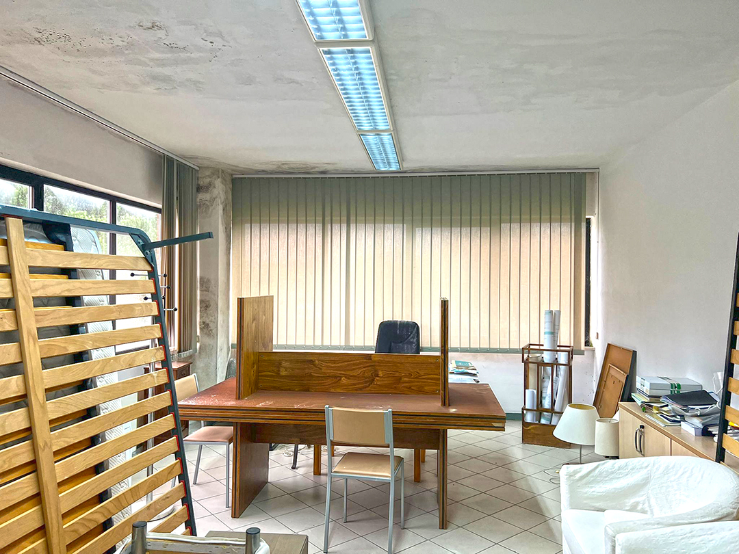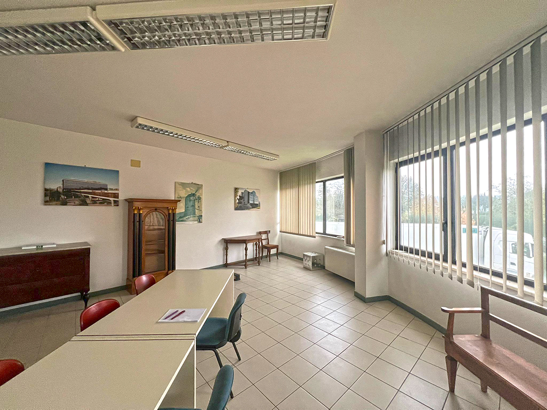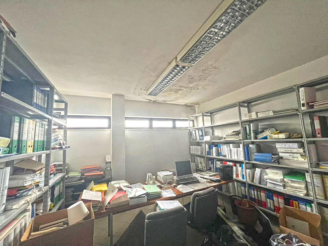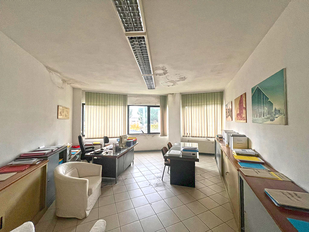 Ufficio composto al piano terreno da ingresso, accettazione, sala di attesa, bagno, disimpegno, sei locali ad uso ufficio e ad usi accessori, e al piano primo da sette locali ad uso ufficio, altri accessori e servizi. Nel magazzino della superficie di mq 236 sono collocate celle frigorifere. Risulta presente al piano terreno una centrale termica provvista da accesso indipendente dal resede.