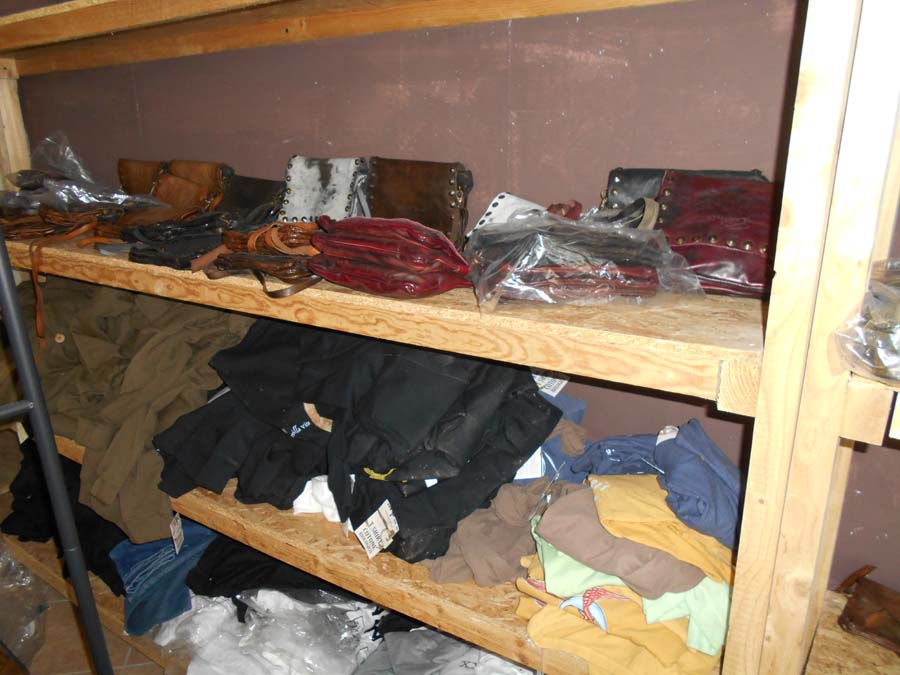 Lotto 1) Articoli di pelletteria e abbigliamento (a titolo esemplificativo scarpe, borse, accessori in pelle e abbigliamento vario) come da allegato LOTTO 1 inventario stima.