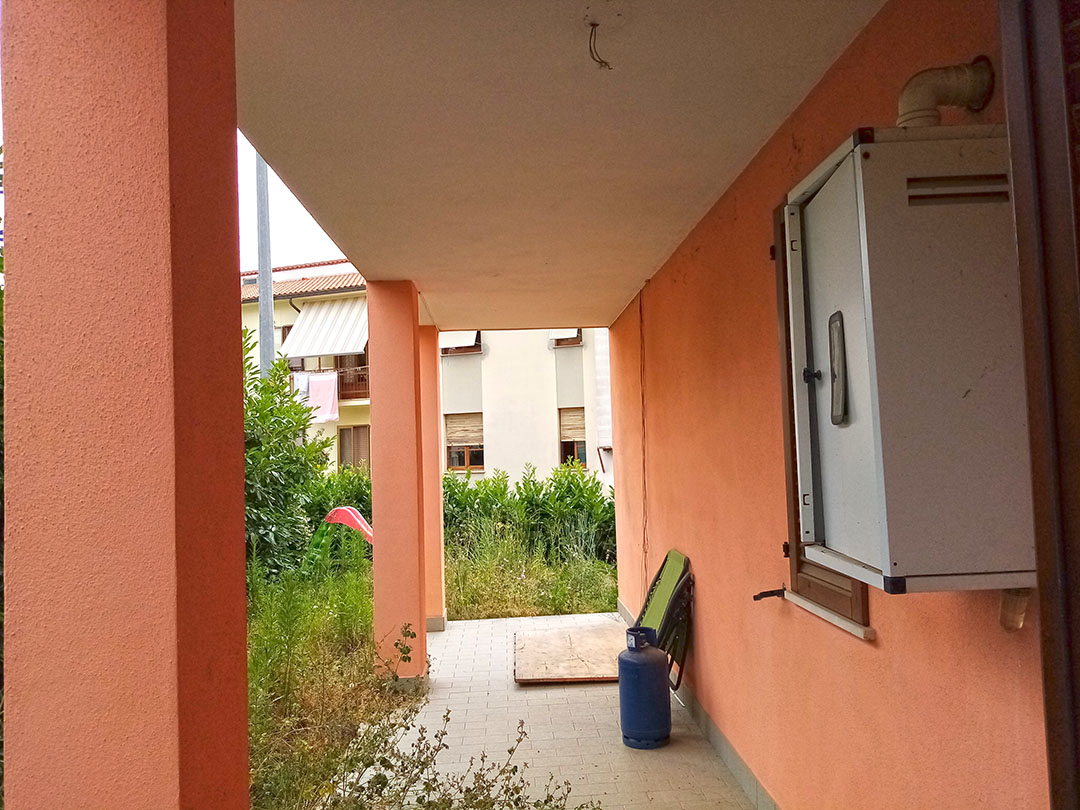 Appartamento di mq 198 composto da ingresso, soggiorno/cucina, servizio igienico, due camere, due porticati e resede esclusivo al piano terra, oltre a box auto al piano interrato.