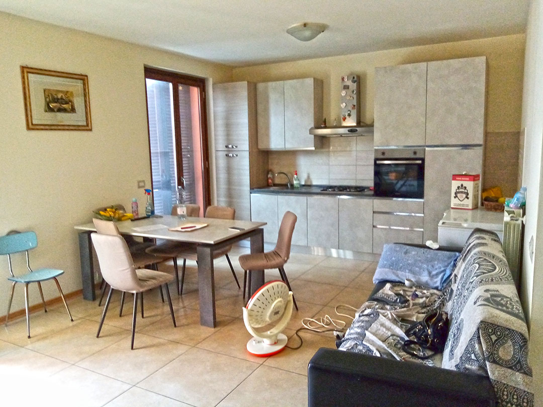 Appartamento di mq 112 composto al primo piano da ingresso, soggiorno/cucina, servizio igienico, terrazzo, loggiato, due camere, due loggiati; al secondo piano da due soffitte, servizio igienico e loggia; box auto al piano interrato.
