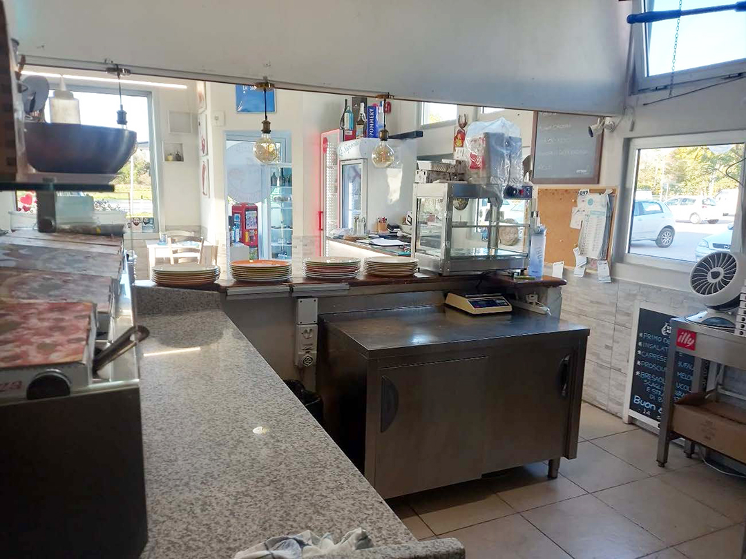 - Negozio: superficie di mq 66 con un ingresso sul lato nord ovest e l’altro sul lato sud est. La zona negozio si presenta ben illuminata in quanto dotata di ampie vetrate sul lato nord est, nord ovest e sud ovest. Il lato sud est confina con il subalterno 2. Gli infissi sono in alluminio con vetri antisfondamento senza oscuramenti. La pavimentazione è costituita da mattonelle in monocottura e gres ceramico. Le tramezzature interne sono in muratura di laterizio, gli intonaci interni sono di tipo civile. Sul lato sud est è presente un forno professionale per pizzeria in muratura.