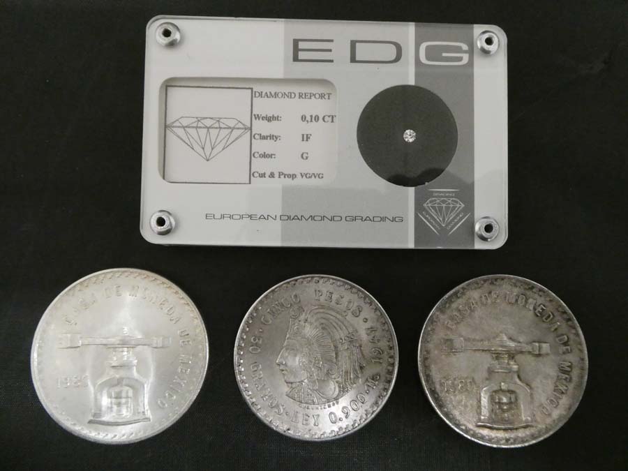 Diamante da 0,10 KT + n. 3 monete in argento (Messico).