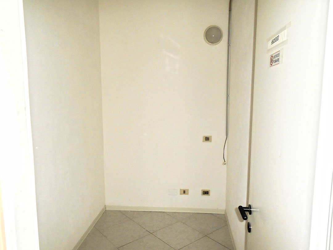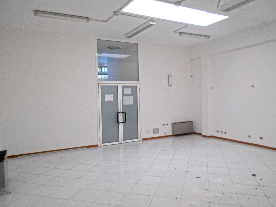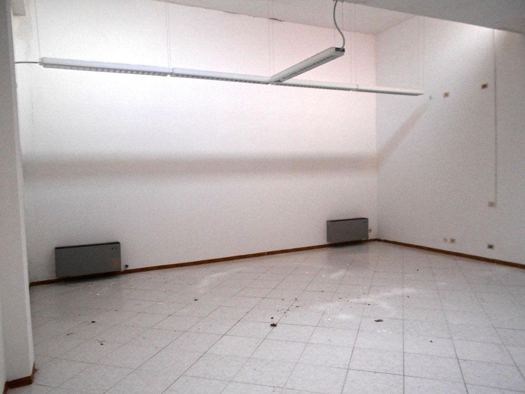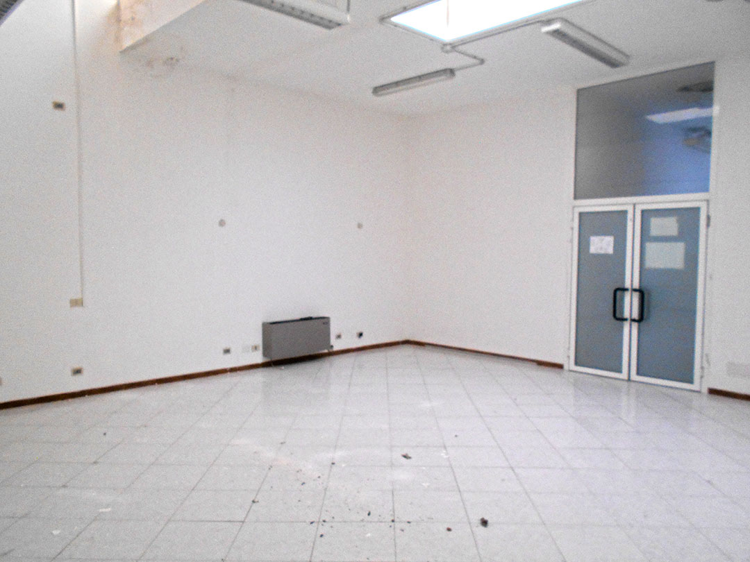 Negozio di mq 98 composto da un ingresso, un piccolo vano, due servizi igienici, di cui uno dotato di antibagno, e tre locali. Completano la consistenza dell’immobile il lastrico solare di circa 55 mq soprastante il negozio, il resede di circa mq 23 e un sottoscala.