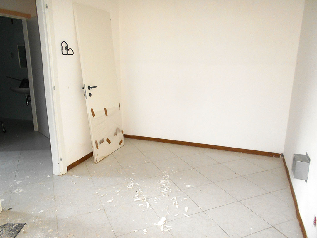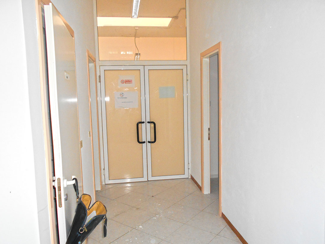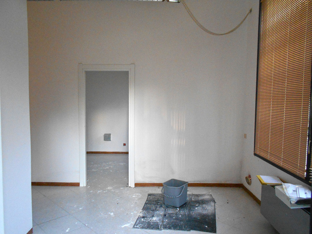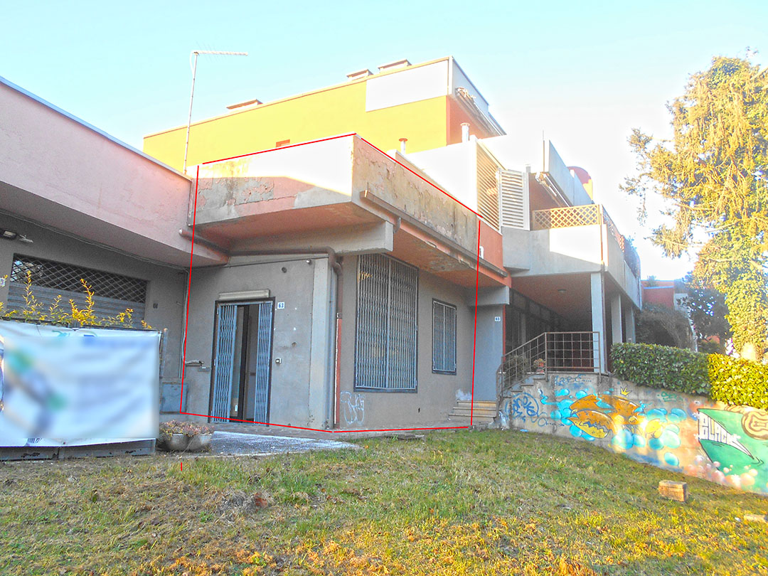 Negozio di mq 98 composto da un ingresso, un piccolo vano, due servizi igienici, di cui uno dotato di antibagno, e tre locali. Completano la consistenza dell’immobile il lastrico solare di circa 55 mq soprastante il negozio, il resede di circa mq 23 e un sottoscala.