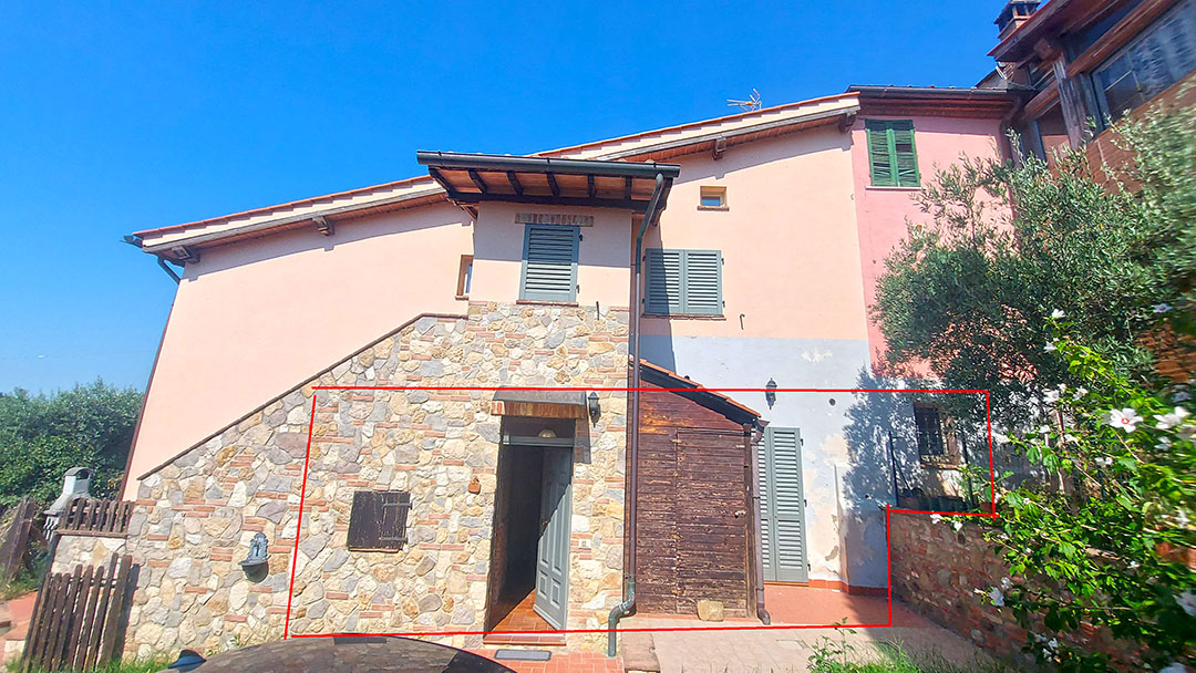 Appartamento composto da ingresso, disimpegno, sottoscala, cucina-pranzo-soggiorno, una camera ed un servizio igienico. A corredo resede esclusivo.