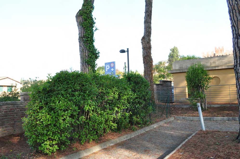 L’ingresso avviene dal cancello pedonale posto sul muro in mattoni che delimita la proprietà condominiale dalla prospiciente Strada dei Tufi. L’area esclusiva è delimitata da recinzione con rete plastificata su montanti metallici e dal suddetto muro di confine in mattoni. L’immobile confina con la corte condominiale al sub 117 e con la prospiciente Strada dei Tufi. La corte esclusiva è delimitata sul lato strada da un muro a mattoni e cancello di ingresso pedonale, mentre sugli altri tre lati è separata dalla corte condominiale del fabbricato mediante rete metallica di colore verde. Lo stato di manutenzione dell’area e della recinzione è buono. La pavimentazione della corte è con terreno naturale e gradini di accesso in muratura e non sono stati rilevati materiali da rimuovere.