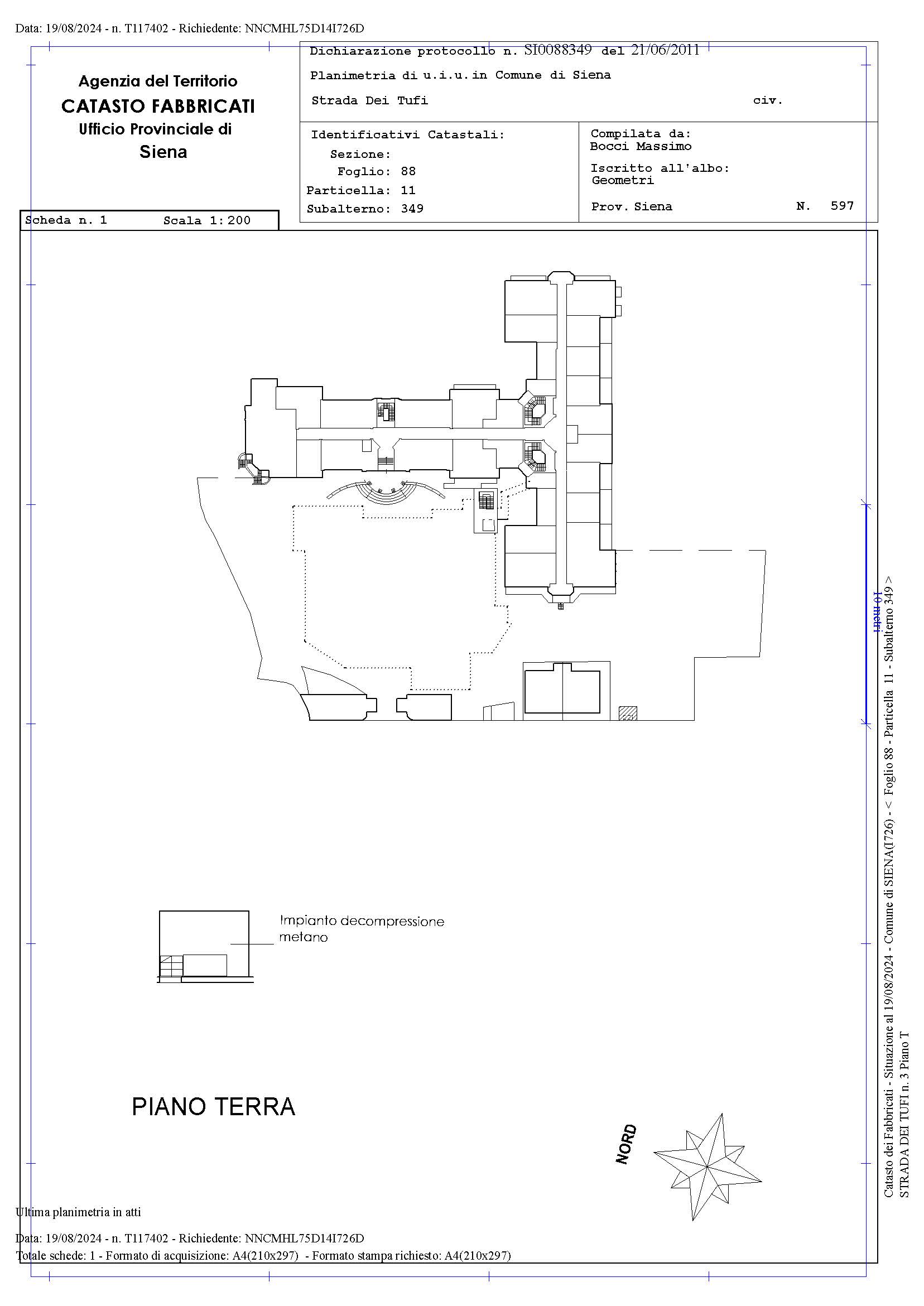 Diritto di piena ed intera proprietà di corte esterna di mq 13 al piano terra posta in Siena, Strada dei Tufi n. 3 e 5/b sulla quale è stato installato l’impianto di decompressione per il gas metano utilizzato esclusivamente dall’ente gestore.