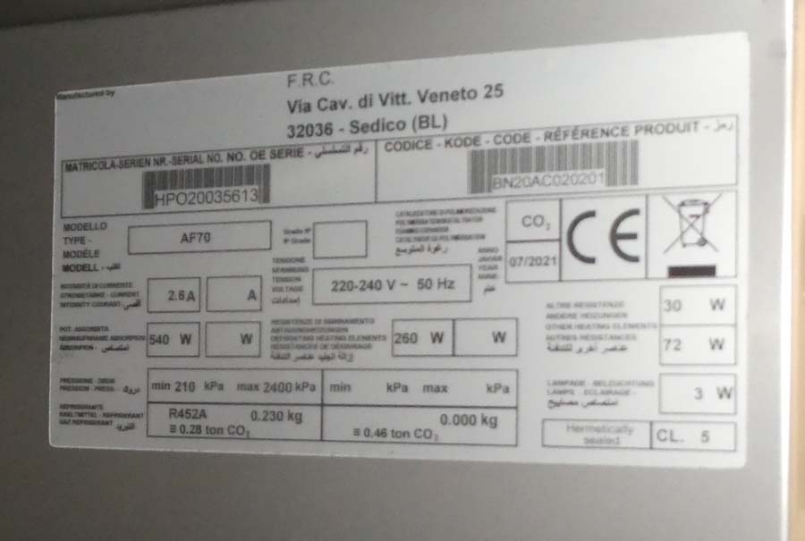 Lotto 10) Frigo negativo Friulinox AF70 anno 2021.