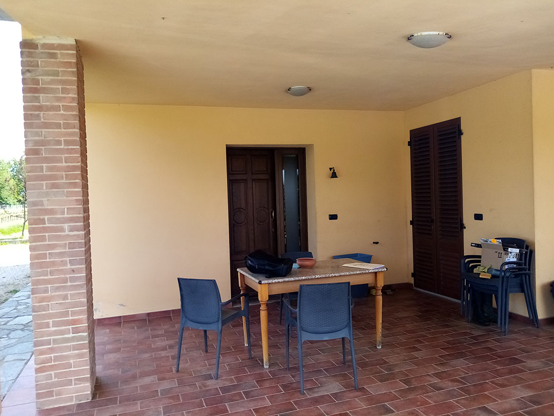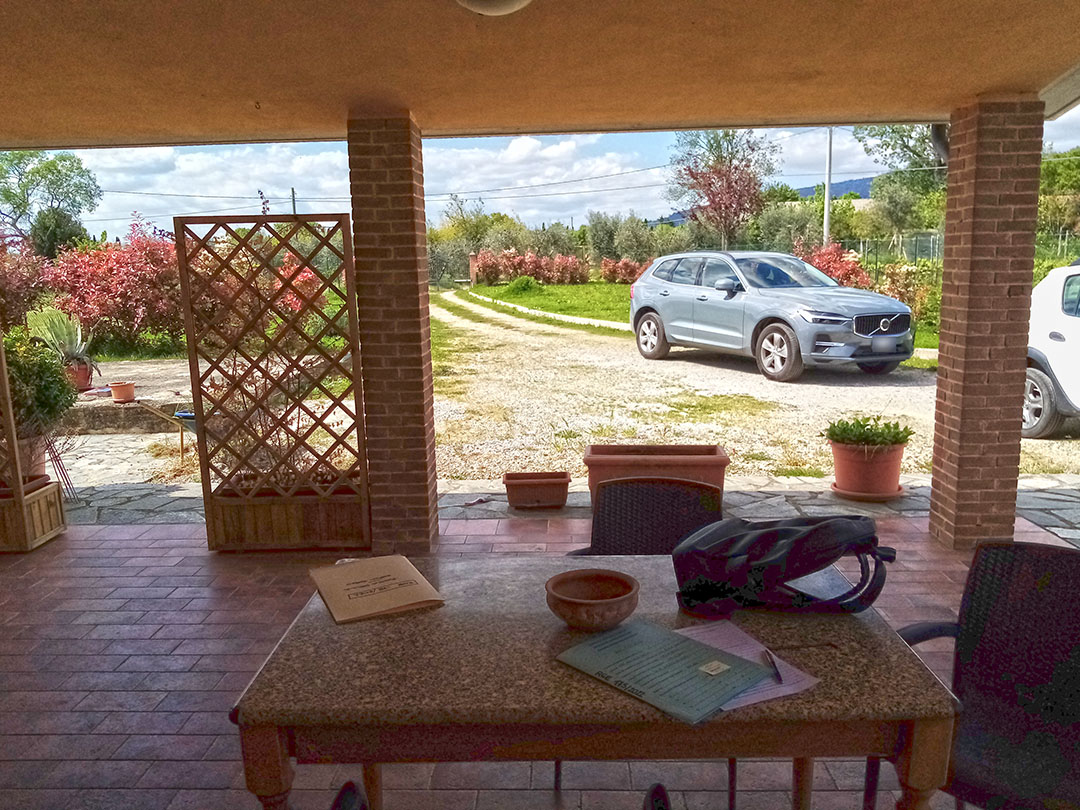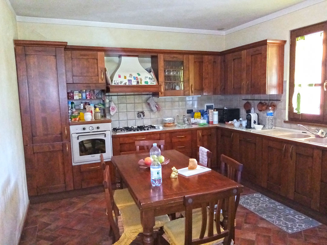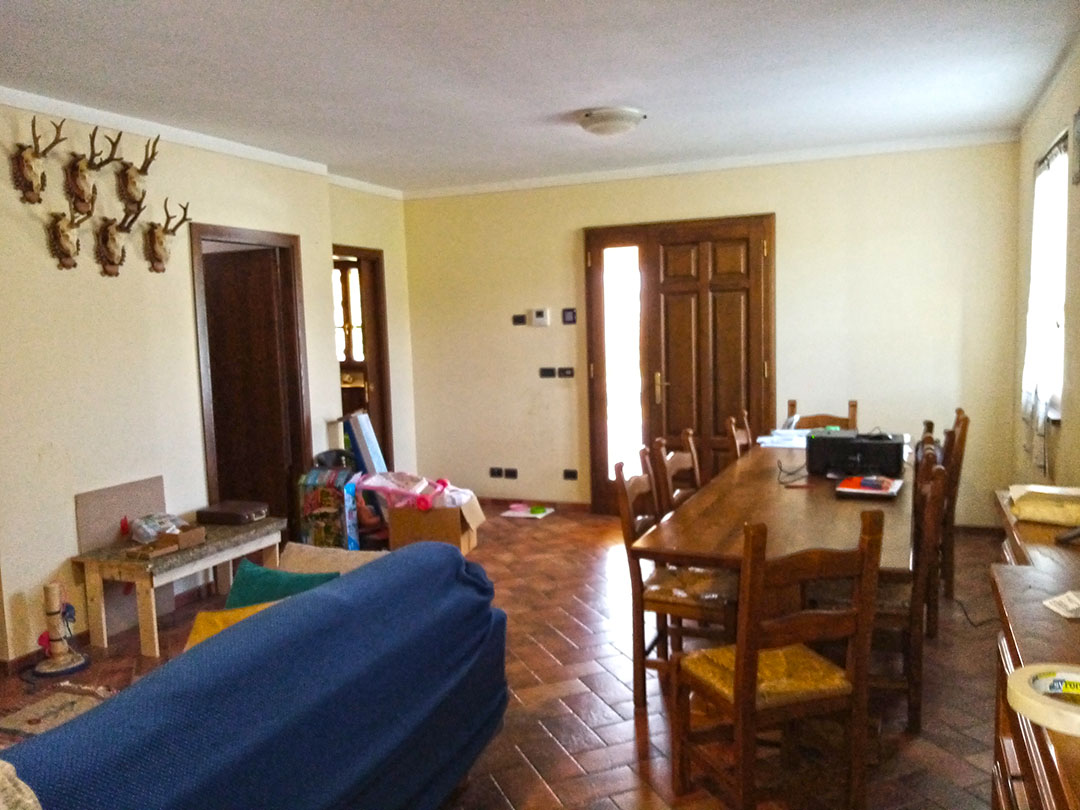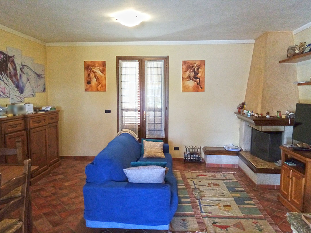 Appartamento composto al piano terra da soggiorno, cucina, disimpegno, ripostiglio, bagno, due portici e pertinente resede circostante tre lati del fabbricato di superficie inferiore a mq cinquemila sul quale è situato un forno/barbecue; al piano primo/sottotetto da tre locali soffitta, disimpegno, lavanderia, due ripostigli e terrazza, il tutto collegato al piano terra da scala interna.