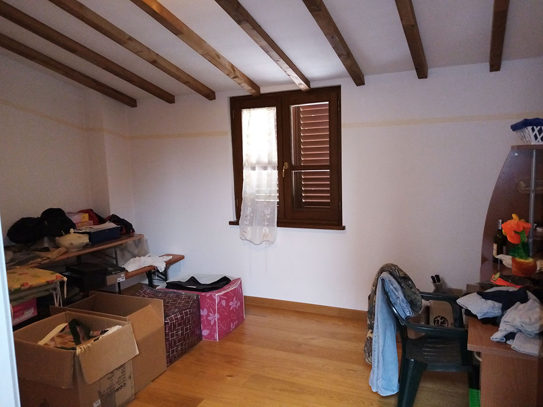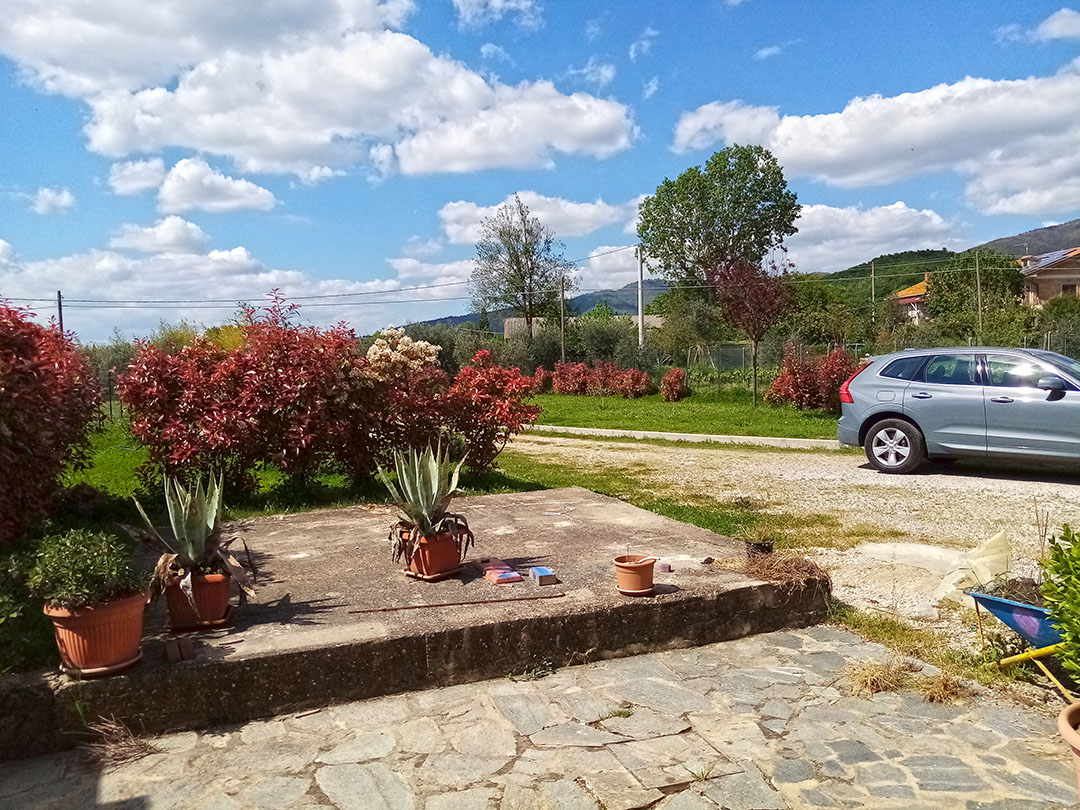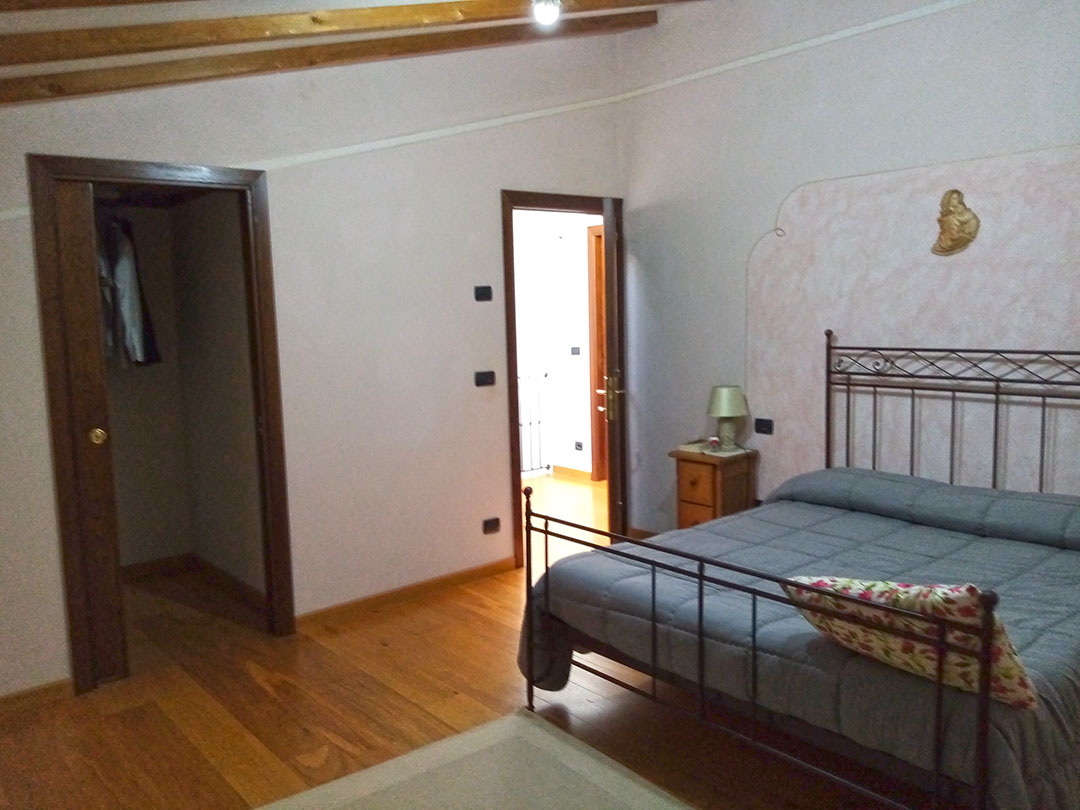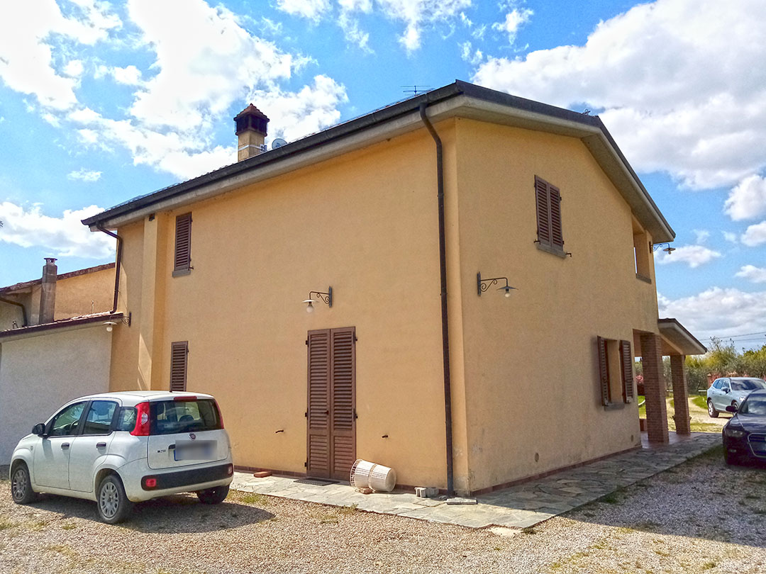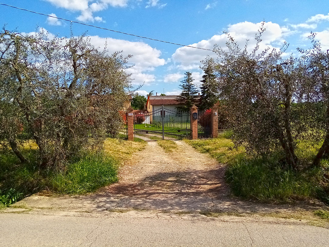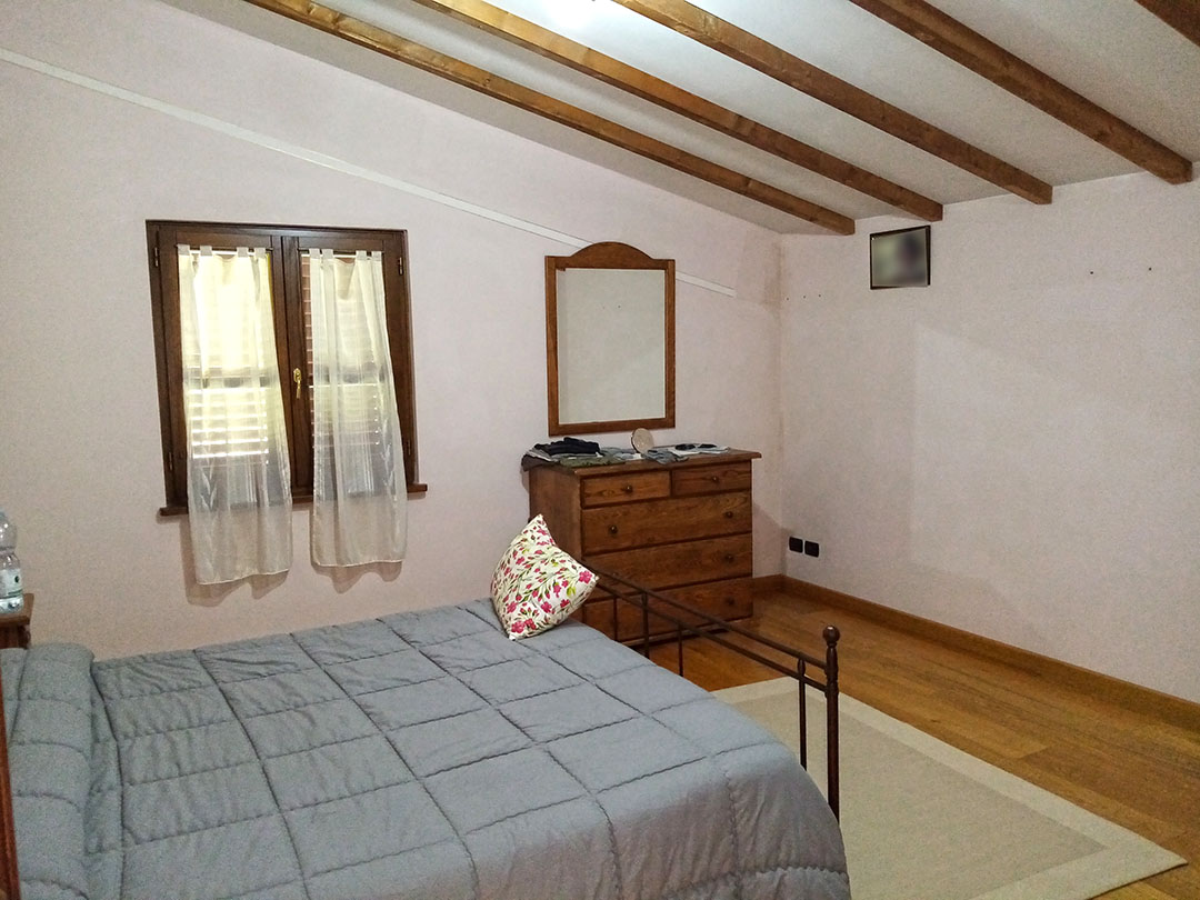 Appartamento composto al piano terra da soggiorno, cucina, disimpegno, ripostiglio, bagno, due portici e pertinente resede circostante tre lati del fabbricato di superficie inferiore a mq cinquemila sul quale è situato un forno/barbecue; al piano primo/sottotetto da tre locali soffitta, disimpegno, lavanderia, due ripostigli e terrazza, il tutto collegato al piano terra da scala interna.