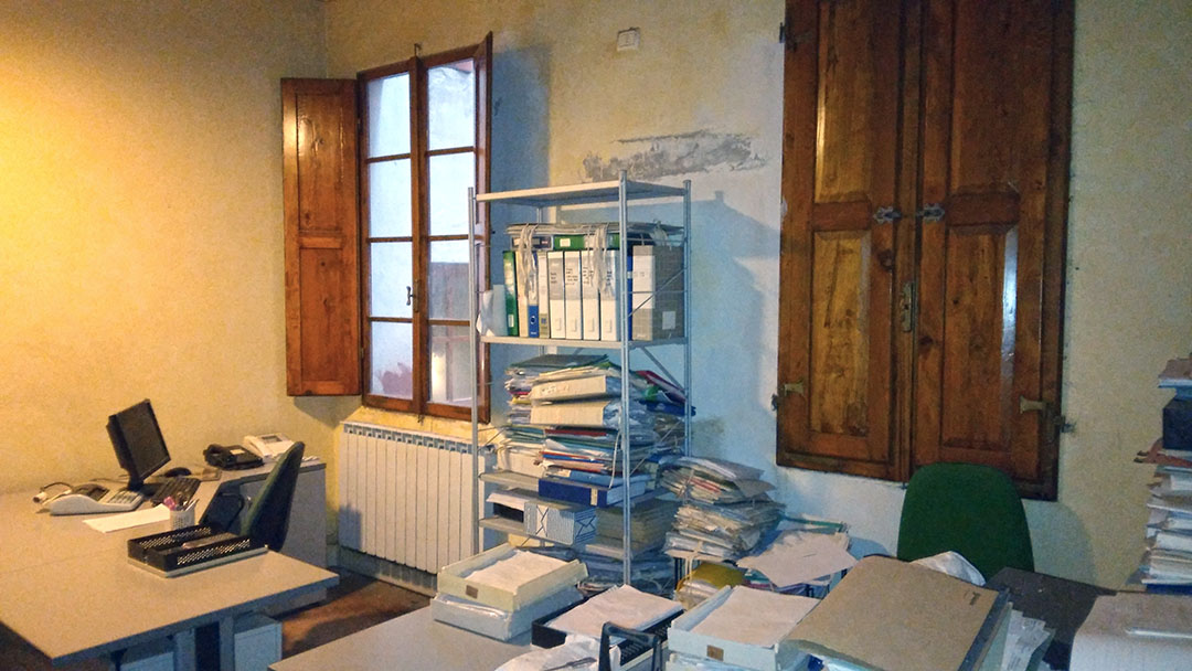 Appartamento adibito a ufficio al primo piano con disimpegno/antibagno e servizio igienico.