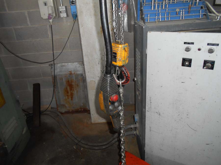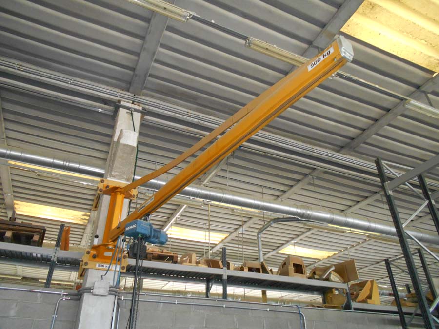Lotto N. 78) Gru a bandiera, ancoraggio a cravatta su pilastro con argano per spostamento attrezzi portata 500 KG.