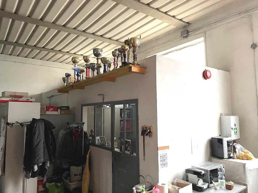 La prima unità immobiliare, ad uso laboratorio, è posta nella porzione centrale del fabbricato artigianale ed ha ingresso indipendente dal resede a comune con altre unità immobiliari del fabbricato prospiciente la strada comunale. E’ composta da un grande ambiente ad uso lavorativo artigianale con altezza di circa 4,05 mt e piccola area di altezza inferiore di circa 2,50 mt con locale ufficio e n. 2 servizi igienici. E’ stata rilevata la presenza solo di una stufa a pellet per il riscaldamento dell’unità immobiliare.