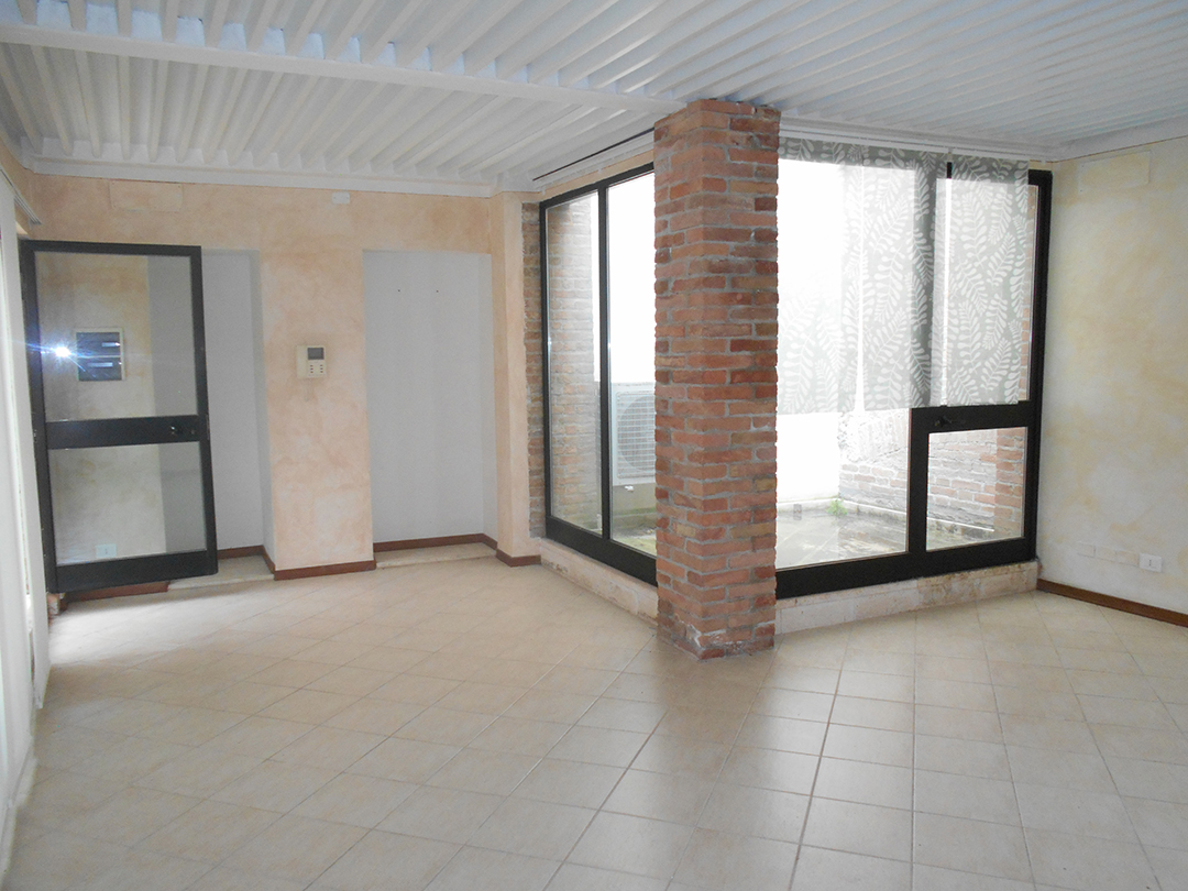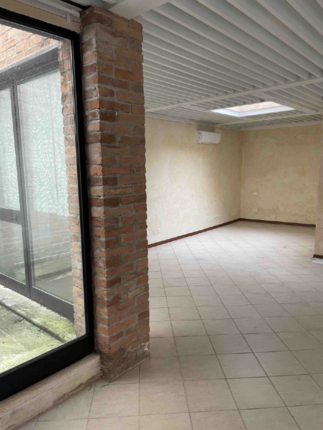 L’ufficio ha accesso mediante una rampa pedonale condominiale coperta da una struttura in ferro e vetro: tale rampa permette l’accesso anche alla parte residenziale ed al garage collettivo al piano seminterrato mediante una scala in muratura.