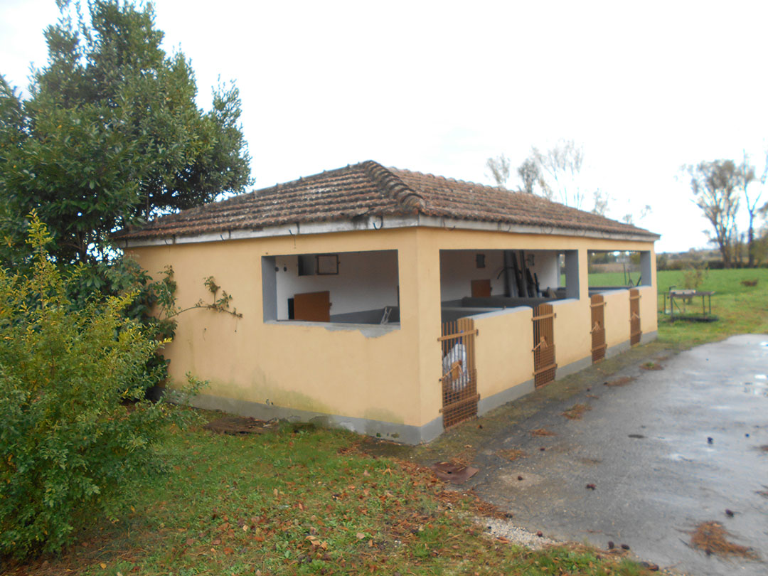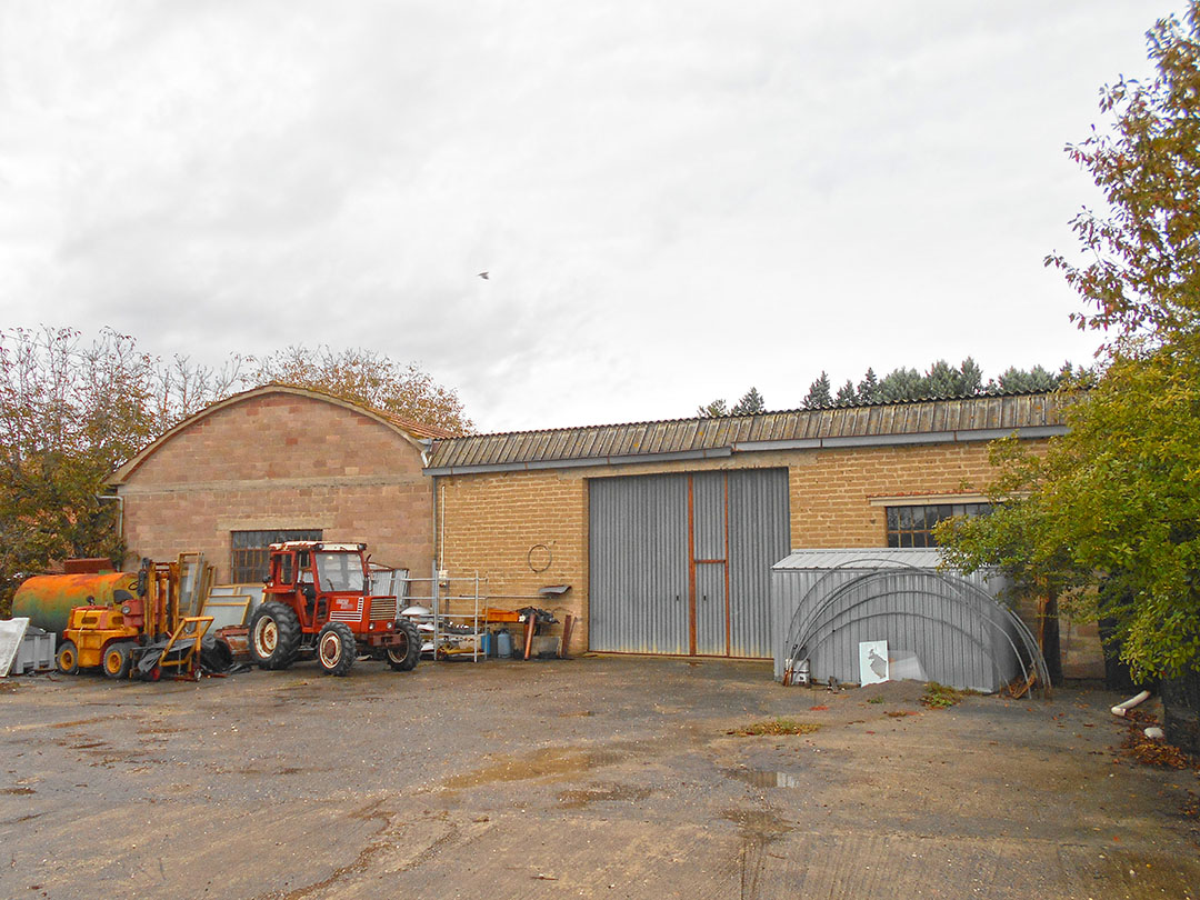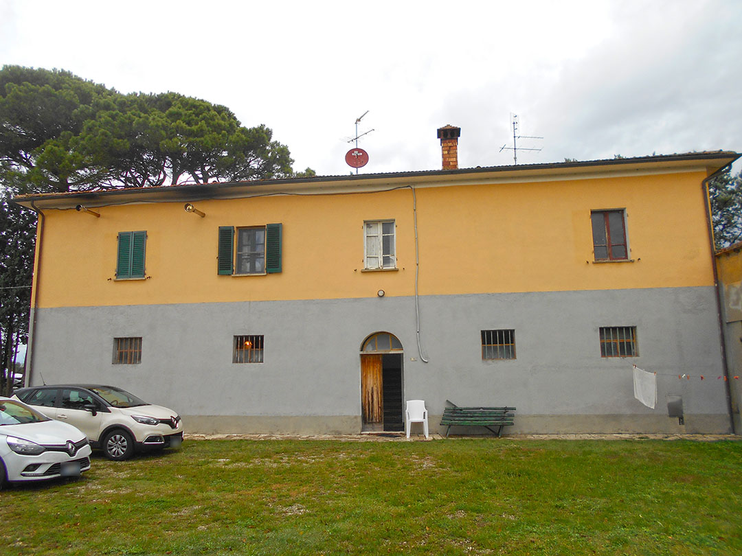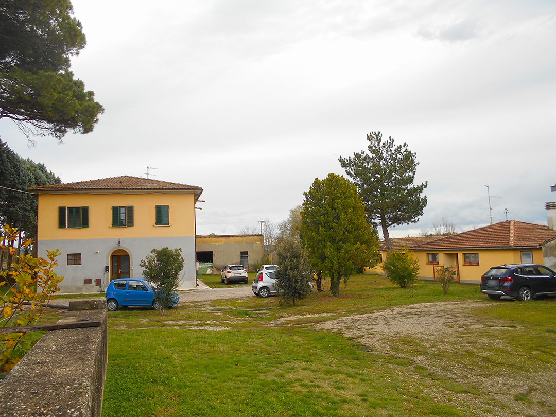 Il compendio è formato da un fabbricato principale a destinazione abitativa che si sviluppa su due piani e composto al piano terreno da locali accessori ed al piano primo da due abitazioni. Al piano terreno vi sono ulteriori locali pertinenziali costruiti in aderenza, oltre a tre manufatti staccati quali annessi agricoli a servizio dell’originaria azienda agricola che si erigono su un ampio resede che li circonda. E’ parte del compendio anche una particella di terreno agricolo che si estende per 5.514 mq di superficie catastale, di qualità seminativo.
