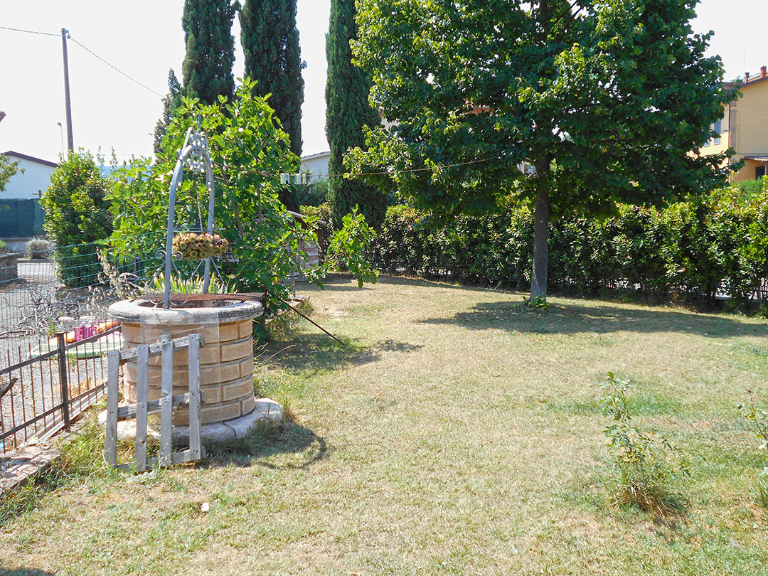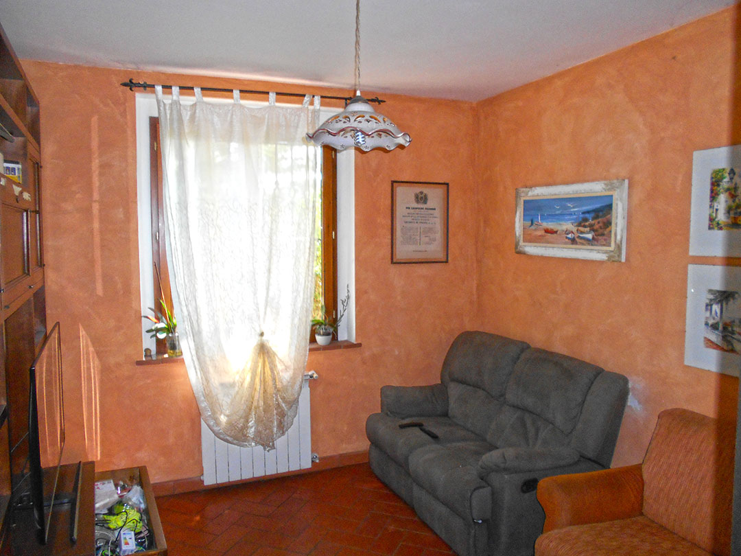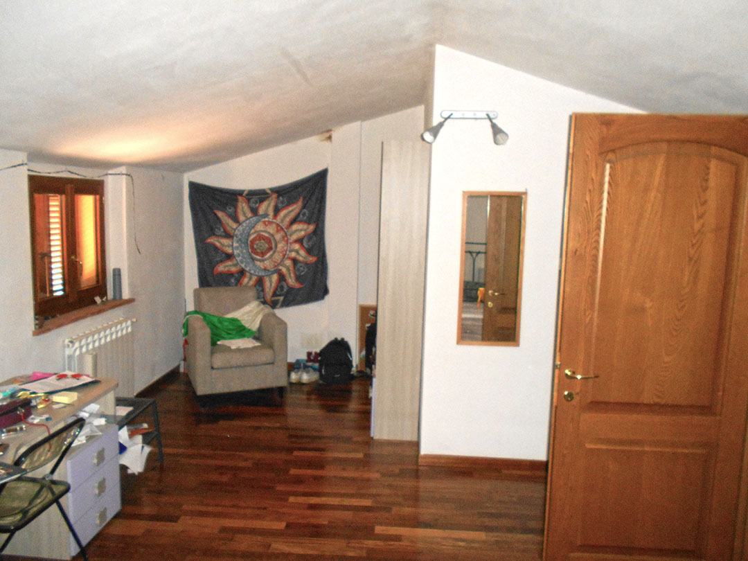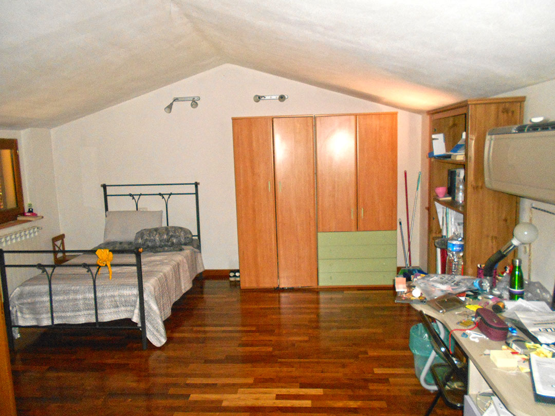 Abitazione di 130 mq composta da portico, soggiorno, cucina/pranzo, 2 camere, 2 bagni, ripostiglio e un balcone al piano primo e da due locali sottotetto. A corredo giardino di 950 mq, garage di 32 mq.