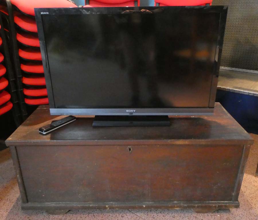 Lotto 7 + 13 + 10 + 9 + 3 + 2) TV Color Sony + cassapanca in legno; cassapanca da ingresso misura 130 x 46 x h 50 + appendiabiti a 4 posti; mobile basso in legno a due ante misure 70 x 35 x h 75; vetrina in legno, con n. 3 sportelli in legno, n. 3 cassetti, n. 2 ante in vetro e vani giorno misure 150 x 200 profondità 46 cm; calcolatrice Olivetti d’epoca; cassettone in legno misure 148 x 68 x h93.