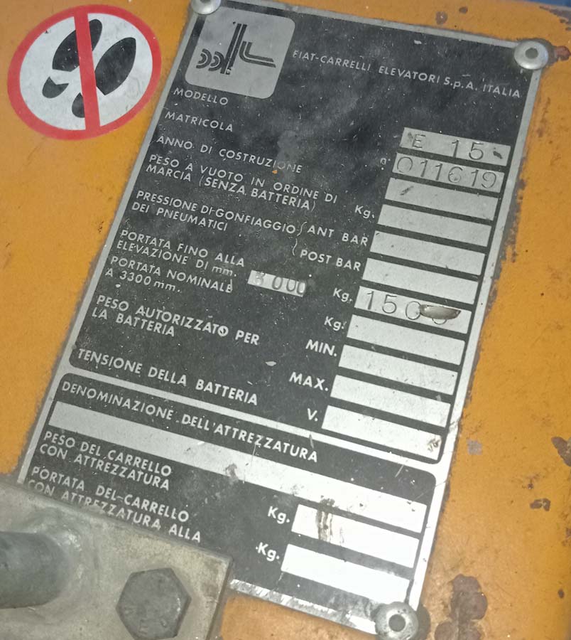Lotto 1) Muletto Fiat E15 GARA ONLINE 27 GENNAIO 2026