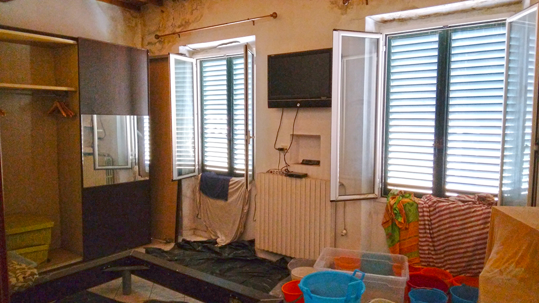 Abitazione di mq 135 al piano terzo composta da ingresso, soggiorno, tinello, cucina, due camere, disimpegno, ripostiglio, bagno con antibagno e locali soffitta al piano quarto.