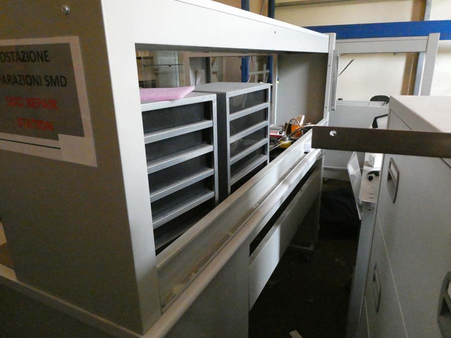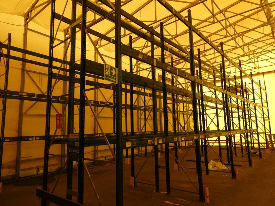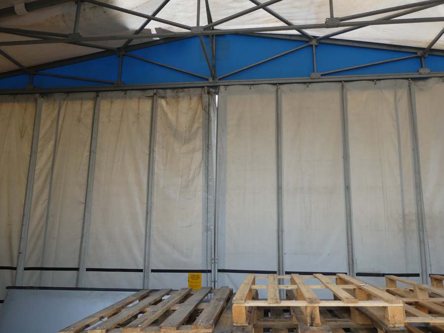 Lotto 1-14 - Tensostruttura marca Giesse misura Mt. 4x10; Tensostruttura appoggiata, marca Giesse misura Mt. 15x20, all’interno della stessa staziona una imponente scaffalatura composta da circa 39 campate di circa 2,70 cadauna con le relative spalle iniziali pari a 46 pezzi; Tensostruttura marca J Civert misura Mt. 7x10; Tensostruttura marca Giesse Mt. 3x3; Tensostruttura appoggiata per carico/scarico Mt. 6x5; Scaffalatura soppalcata Mt. 9x4 con due scomparti accoppiati, struttura removibile; Fasatore Rego Ducati Energia – reactive power controller; Gruppo di continuità Riello Multisentry; Motore di aspirazione e canalizzazione esterno; Scrivania con piano in vetro rosso; N. 2 Compress...