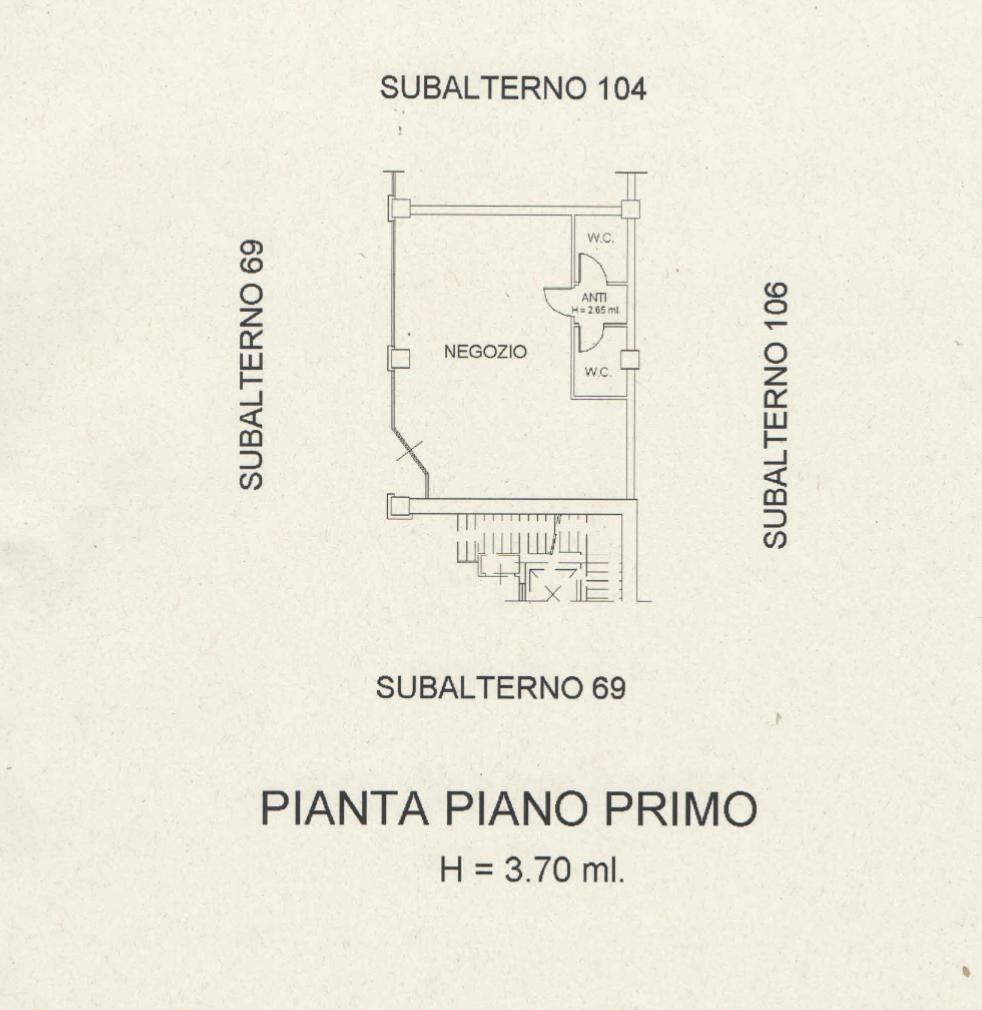 Locale commerciale al primo piano composto da un vano destinato a negozio con antibagno e due servizi igienici. Superficie commerciale: mq. 72 circa.