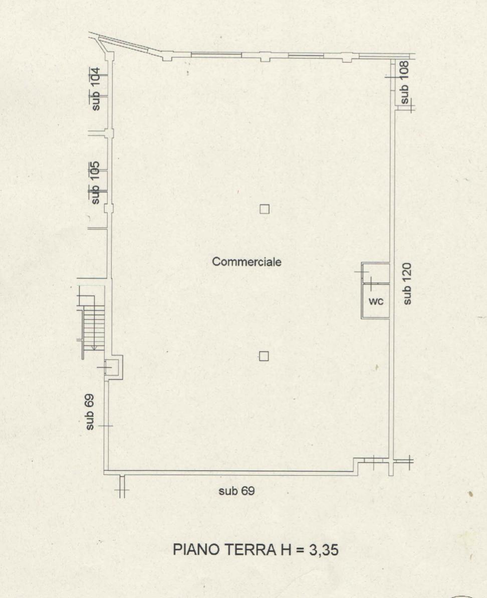 Locale commerciale al primo piano composto da un locale commerciale oltre a antibagno e servizio igienico da rifinire. Superficie commerciale: mq. 550 circa.