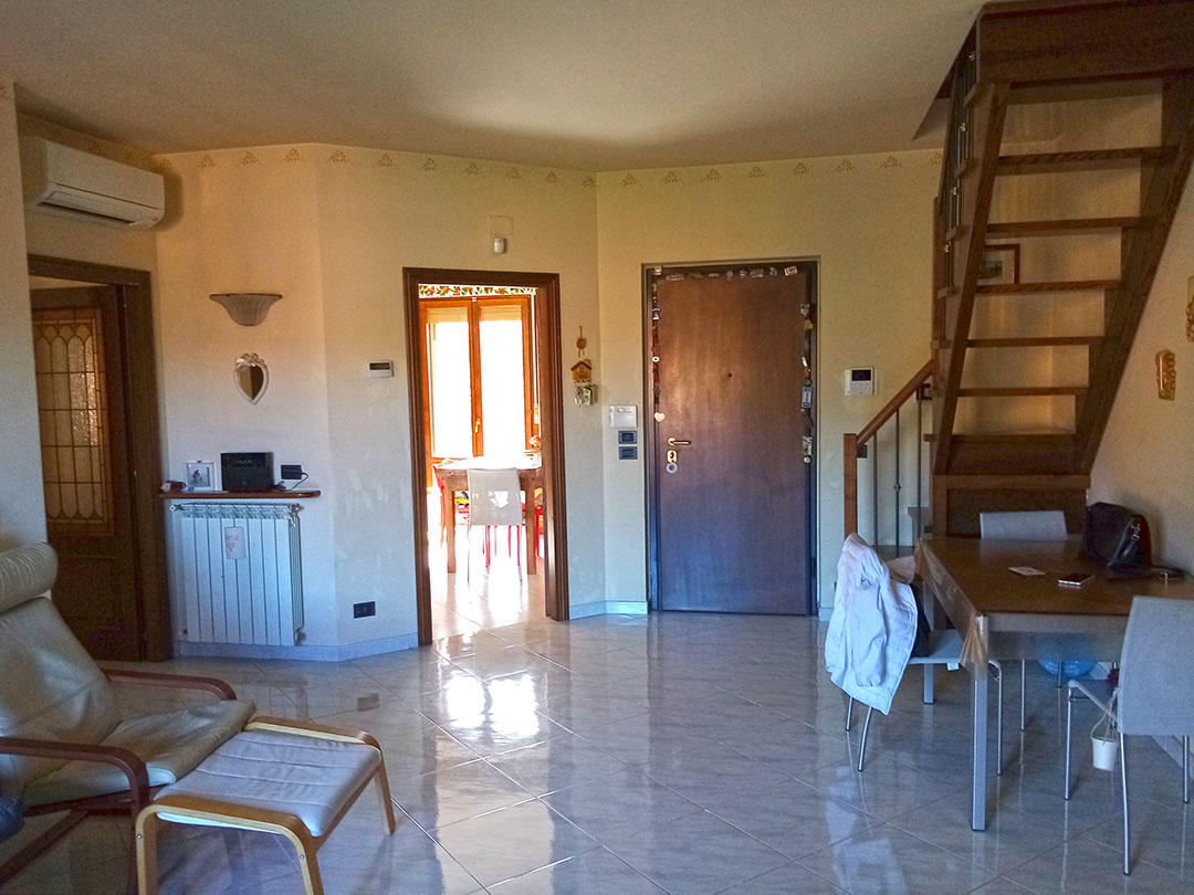 Appartamento al terzo piano composto da soggiorno, cucina, disimpegno, due servizi igienici, due camere da letto, studio, tre balconi, scale di collegamento interne a cui si accede a locali sottotetto accessoriati da un terrazzo.