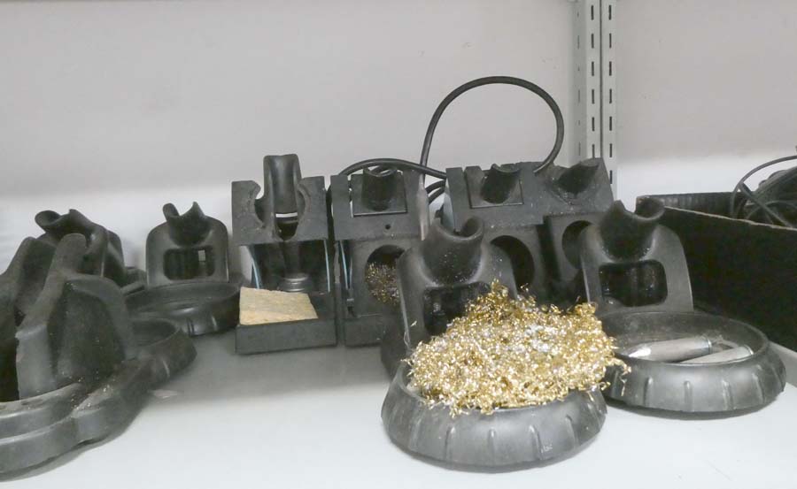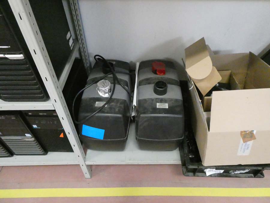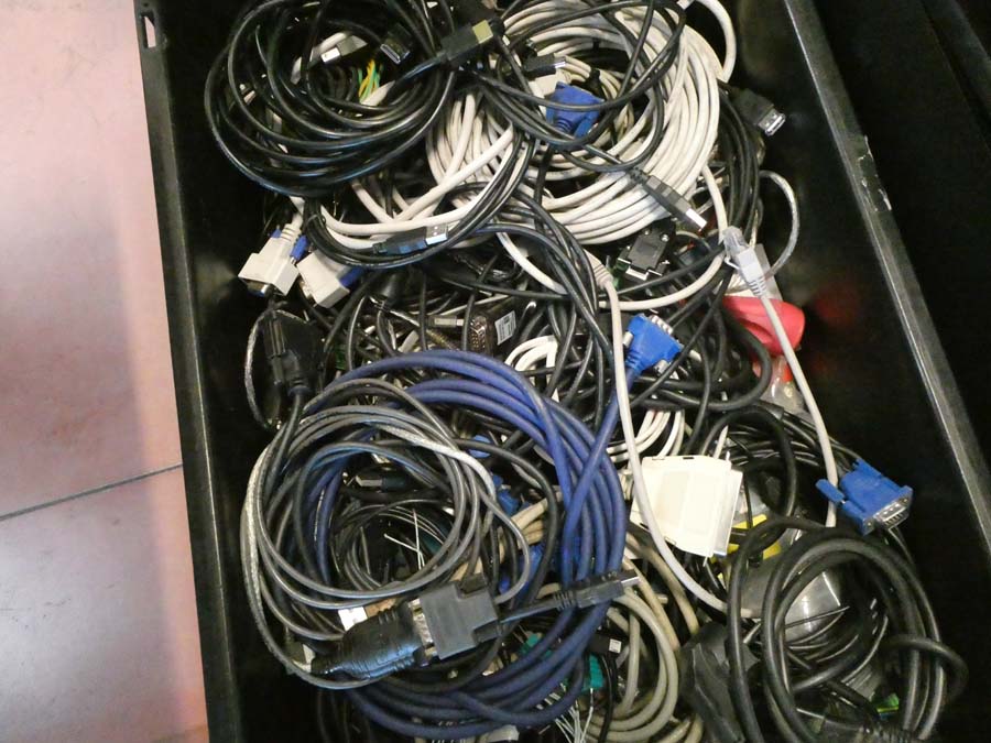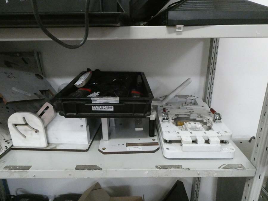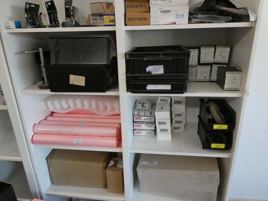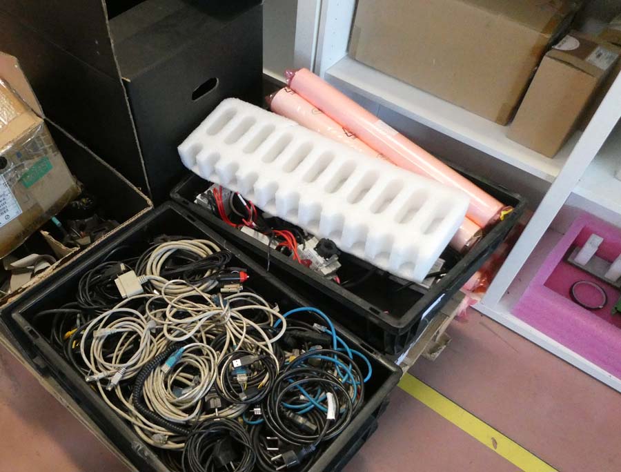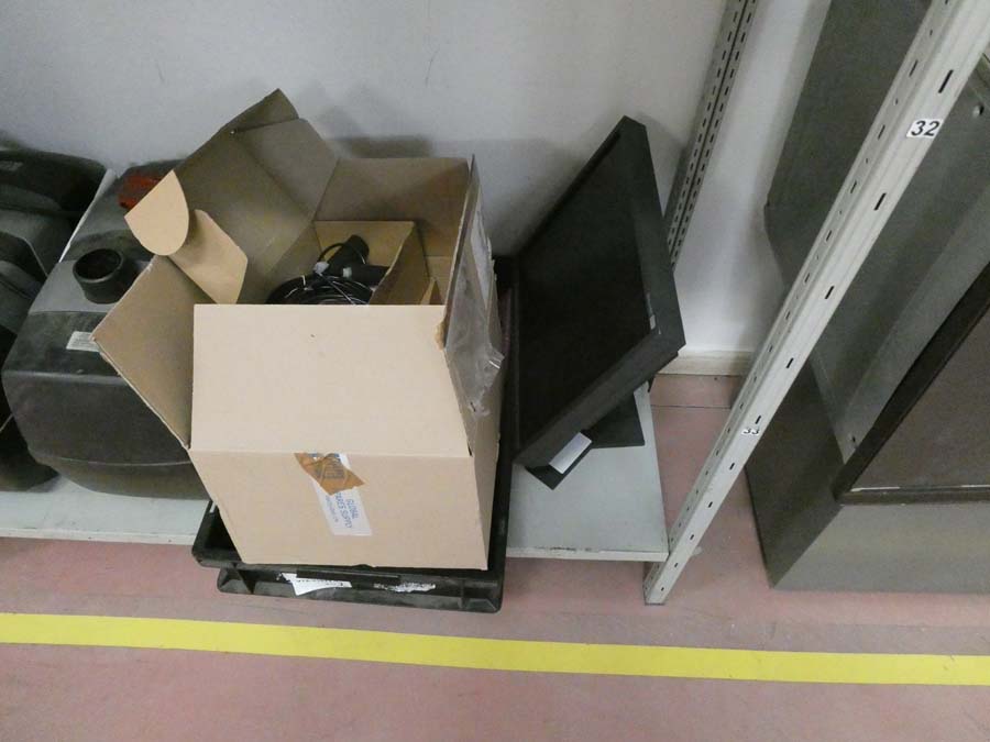 Lotto n. LOTTO E - Scaffalatura contenente N. 25 case, circa 40 tastiere, 30 schermi, n. 9 stampanti, stazioni di saldatura varie, cavi, avvolgitori, aspiratore, stufe, telefoni, portatili, n. 7 portatili e altro.