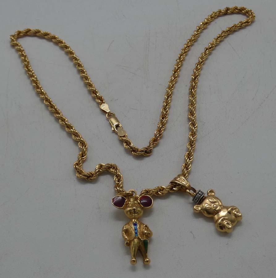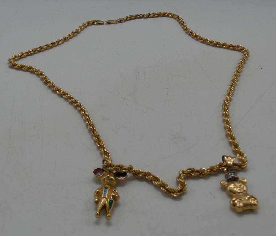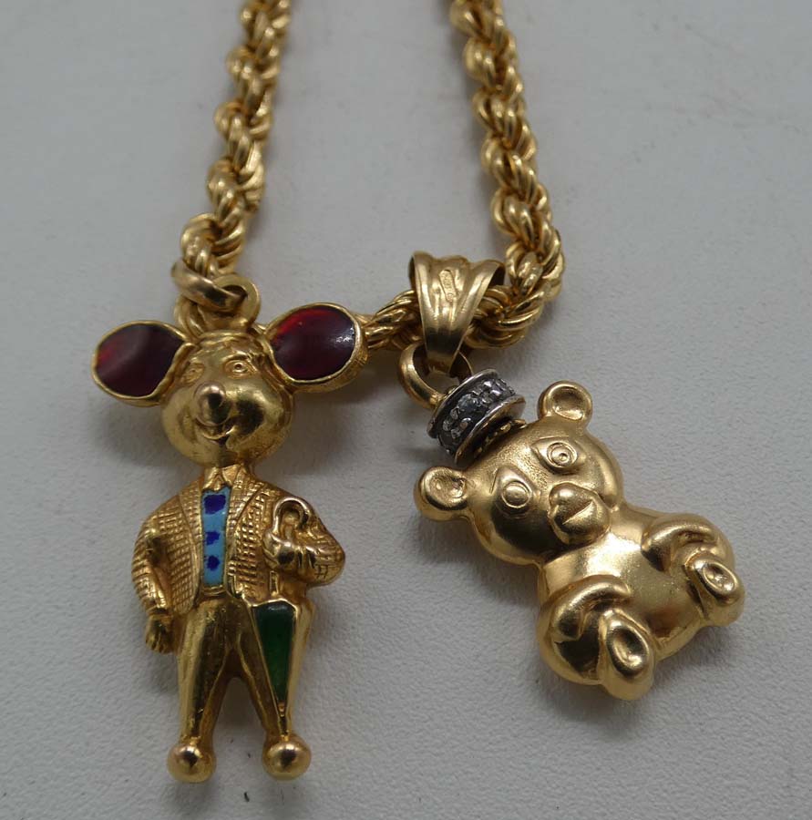 Lotto 92A) Collana in oro con ciondolo topo gigio e orsacchiotto gr. 17,5.