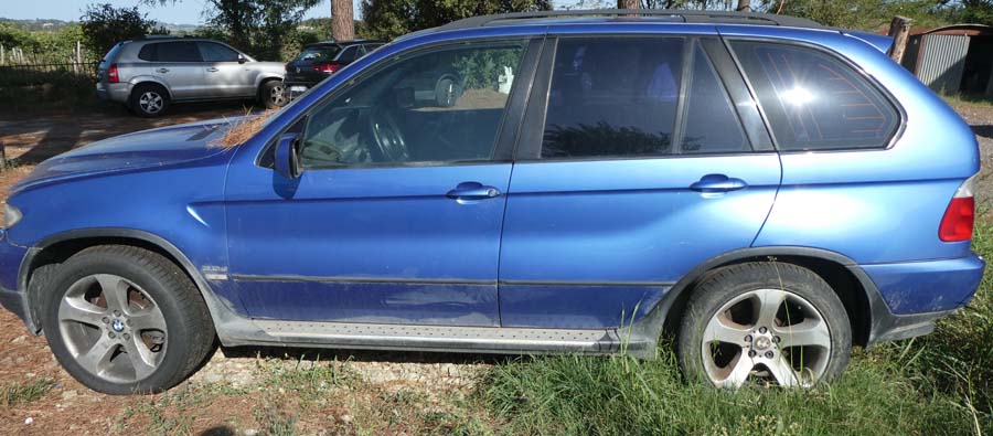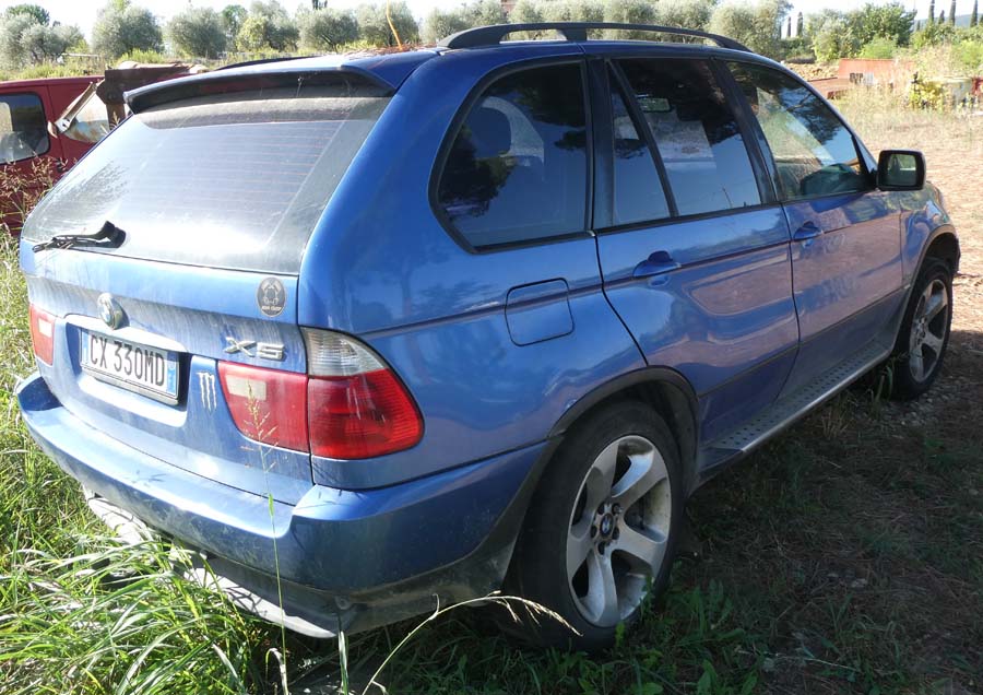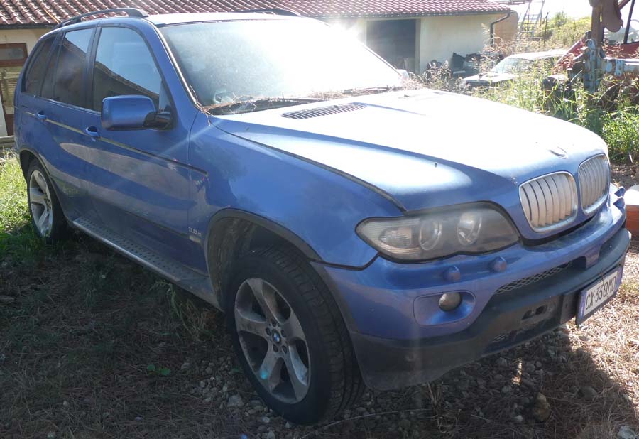 Lotto 15) Autovettura BMW X5 targata CX330MD immatricolata nel 2005, alimentazione a gasolio interni pessime condizioni, barra interna cofano smontata, provvista di chiave e libretto di circolazione, sprovvista di C.d.P. .