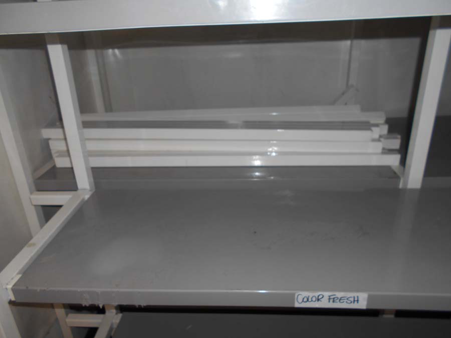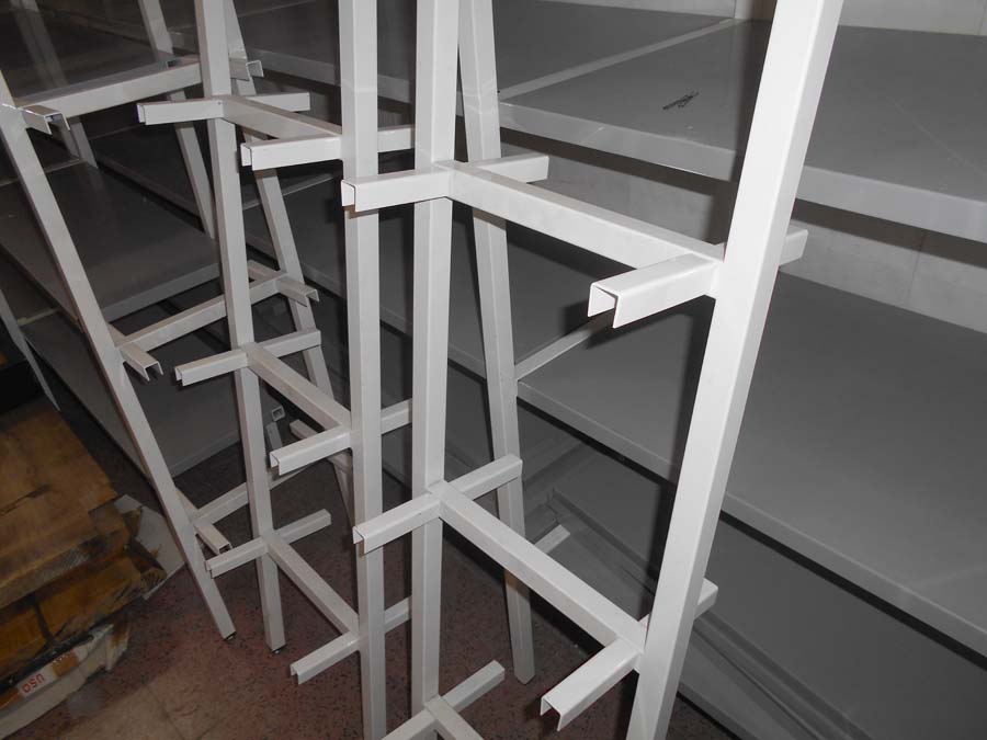 LOTTO 10) Scaffalatura bianca componibile con circa 32 piani e 12 fianchi.