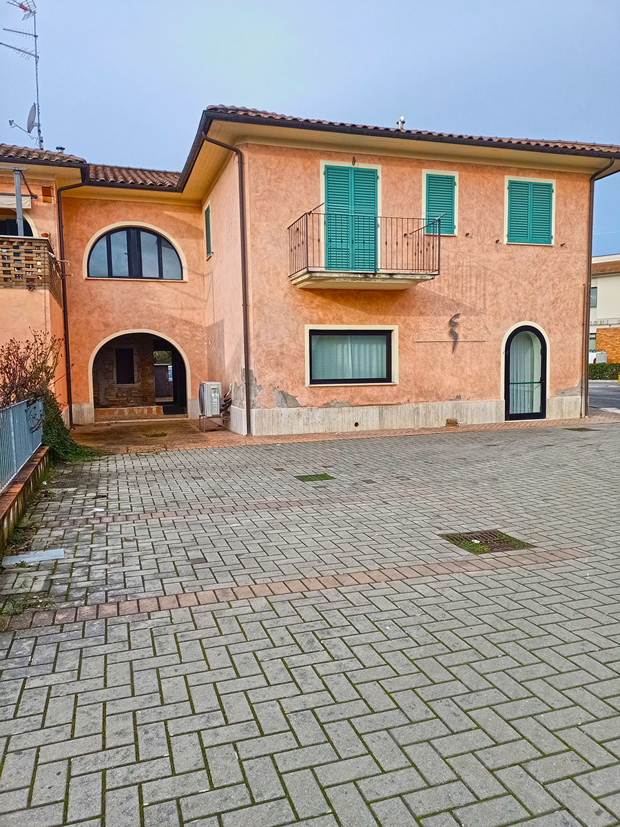 Piena proprietà di Locale destinato a mostra con garage e posto auto realizzato nel complesso immobiliare di via Mazzini individuato al Catasto Fabbricati del Comune di Torrita di Siena ai seguenti identificativi: Foglio 20 Partic. 147 sub. 18 (Locale uso mostra esposizione categoria in corso di definizione); Foglio 20 Partic. 147 sub. 30 - Cat. C/6 - Cl. 1; Foglio 20 Partic, 147 sub.46/25 Cat. C/6 Cl. 3. I locali si presentano al rustico e senza infissi; il complesso è composto da due locali oltre wc e porticato.