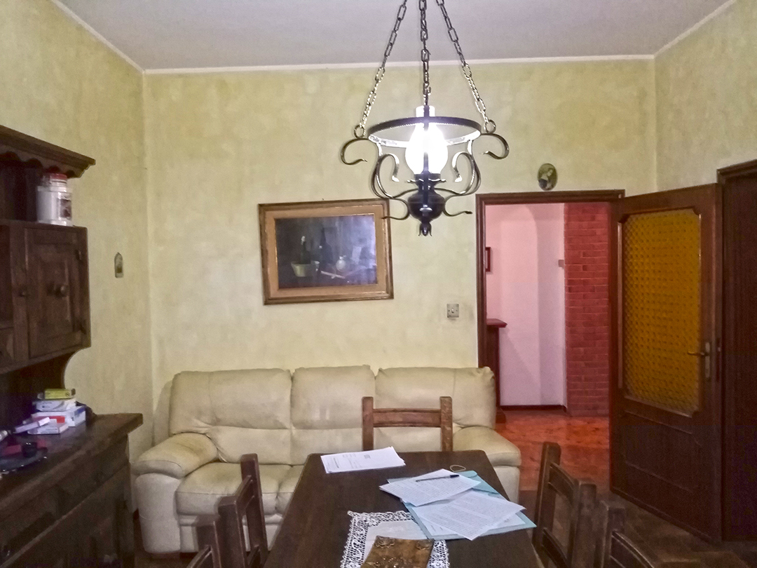 Abitazione posta a piano primo con ingresso indipendente da scala esterna raggiungibile da resede pertinenziale così composta: ingresso, pranzo, cottura, soggiorno, disimpegno, servizio igienico, tre camere da letto, una delle quali con servizio igienico, ed è corredato da sottotetto/soffitta e locale caldaia a piano terreno. Rimessa costituita da annesso rurale ubicato in zona agricola.