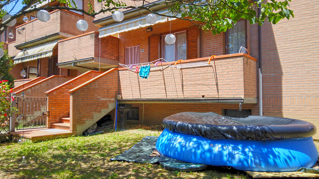 Appartamento al piano terreno composto da pranzo soggiorno, disimpegno, bagno, camera e terrazza, ed è corredata da resede esclusivo.