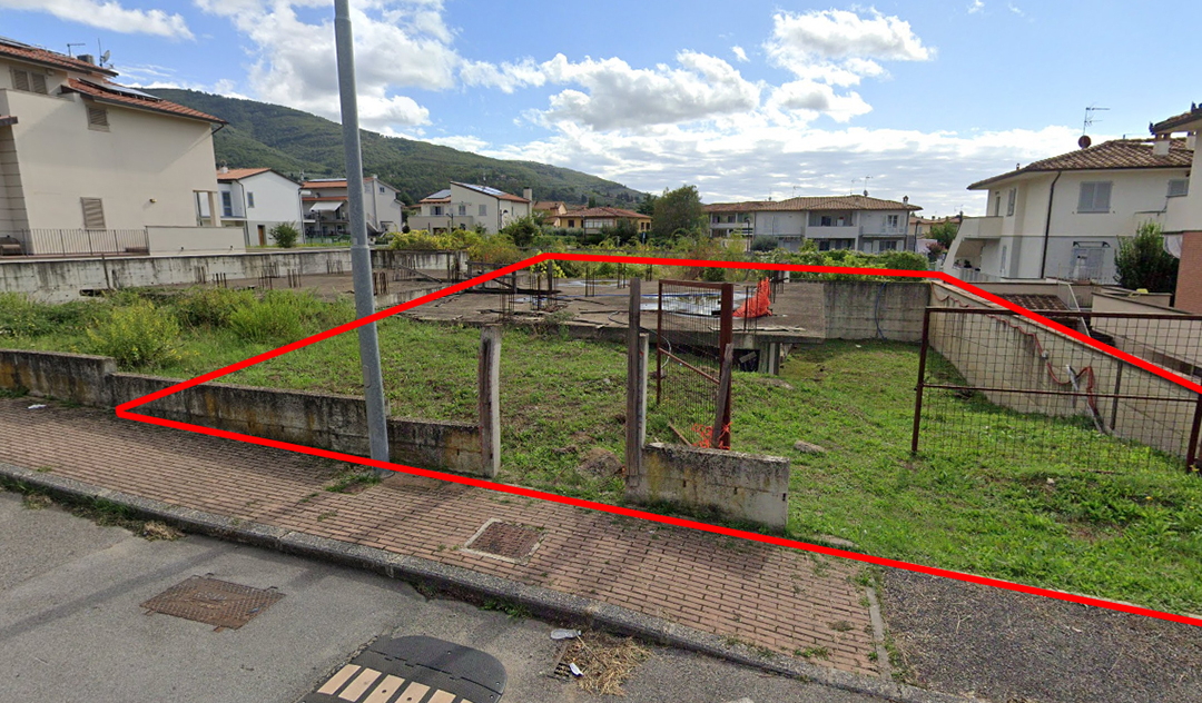 Trattasi di una porzione del lotto n. 3 della lottizzazione residenziale “I Toci” con soprastante una struttura in cemento armato con solai in laterizio ad uso residenziale, edificata allo stato grezzo sino al solo piano terra di un edificio previsto quadrifamiliare: in particolare si tratta della porzione sulla destra per chi guardi dalla Via Lama con resede esclusivo circostante lo stesso immobile e con un lato in aderenza ad altra proprietà.