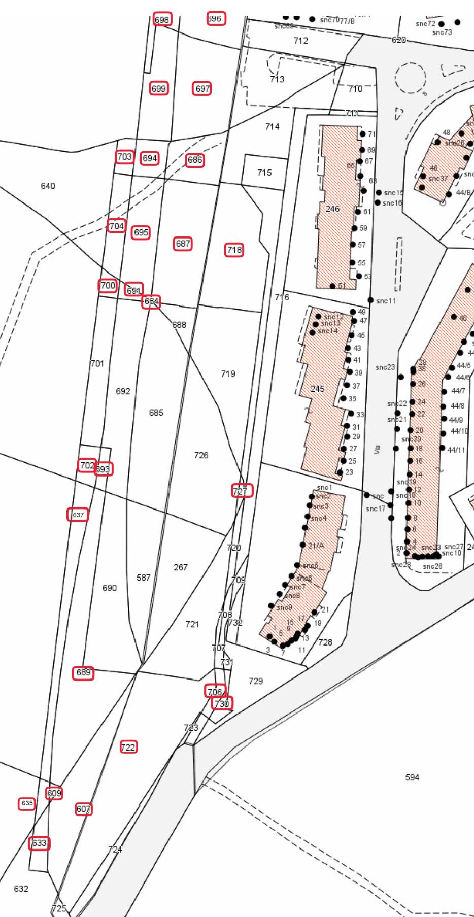 Su tali aree si è sviluppata una lottizzazione per la realizzazione di complessi edilizi destinati alla residenza: due lotti A e B in edilizia convenzionata con una superficie commerciabile pari a mq 920 e due lotti C e D in edilizia libera con una superficie commerciale pari a mq 1380.